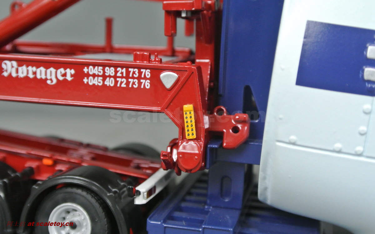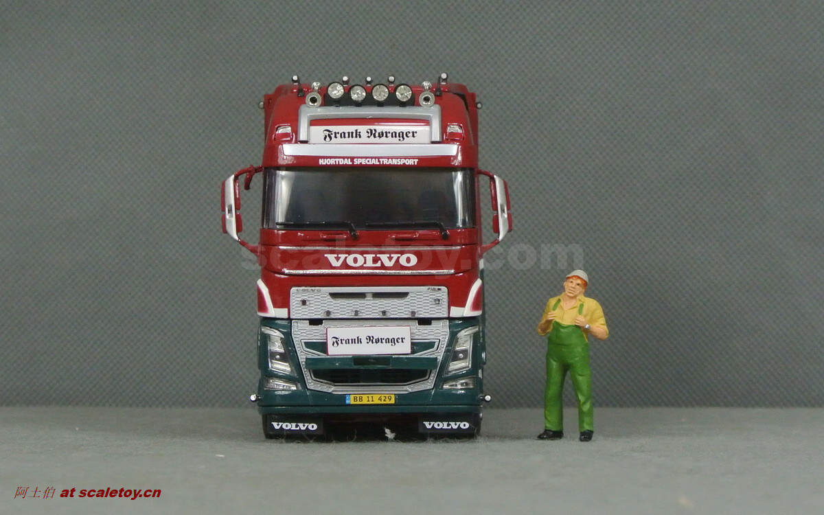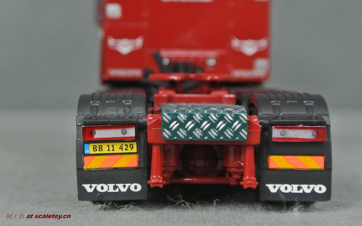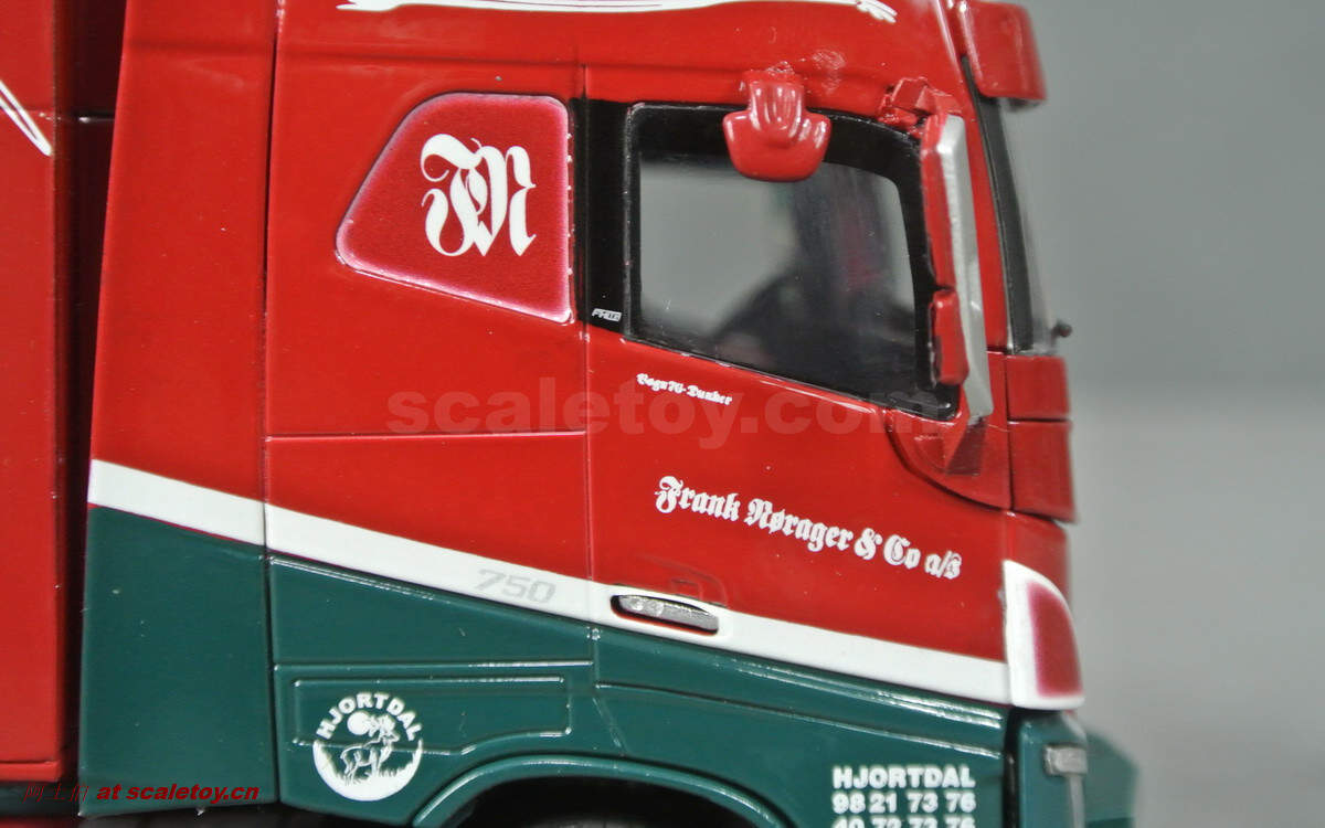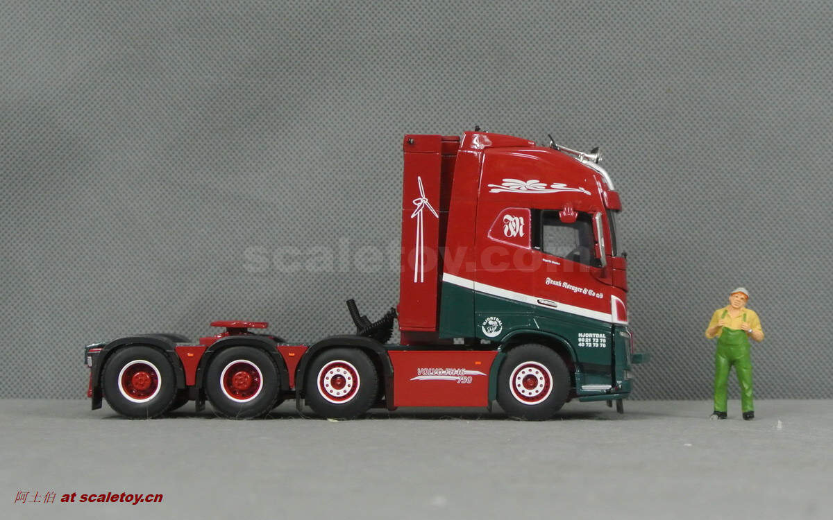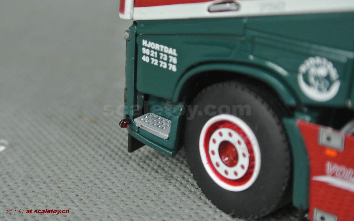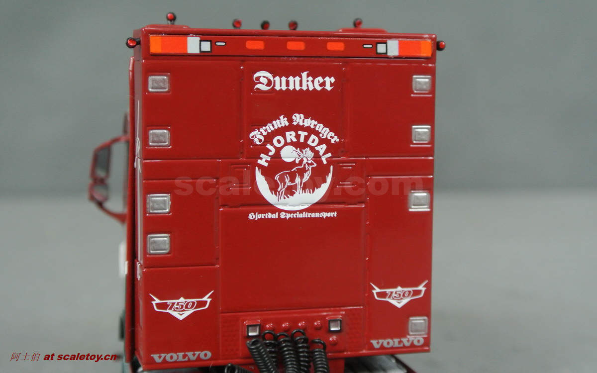 驾驶室侧面的各种字样和logo都有不错展现;拖头型号为VOLVO FH 16 750马力,够劲