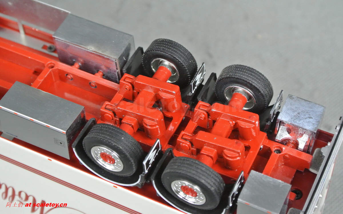 前面的两轴,在一个固定转盘里,可以整体旋转。带弹簧避震。