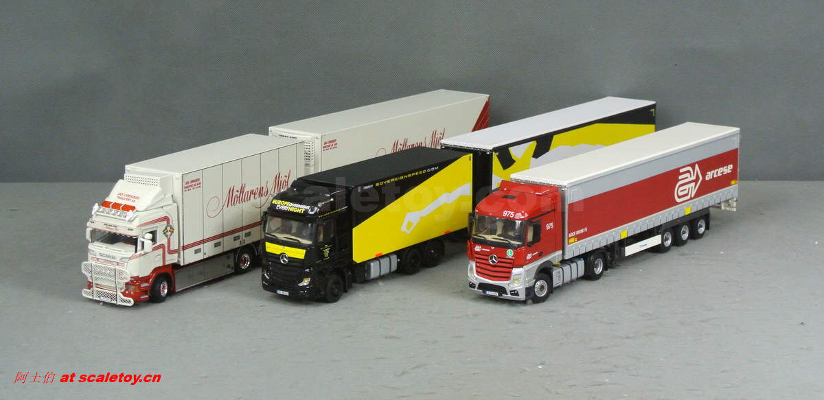 [WSI] 1/50 MERCEDES BENZ ACTROS MP4 STREAM SPACE 4×2 with 3x CURTAINSIDE TRAILER – ARCESE奔驰拖头挂侧帘厢式货车 ARCESE公司涂装