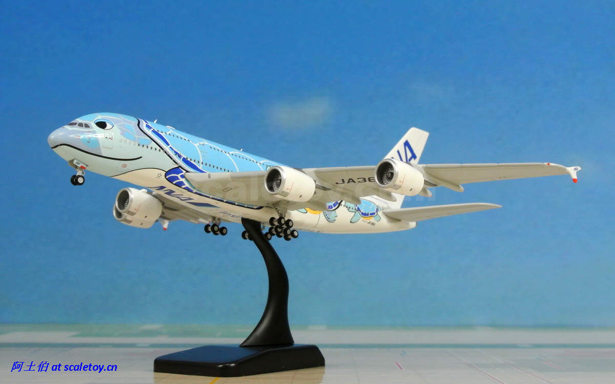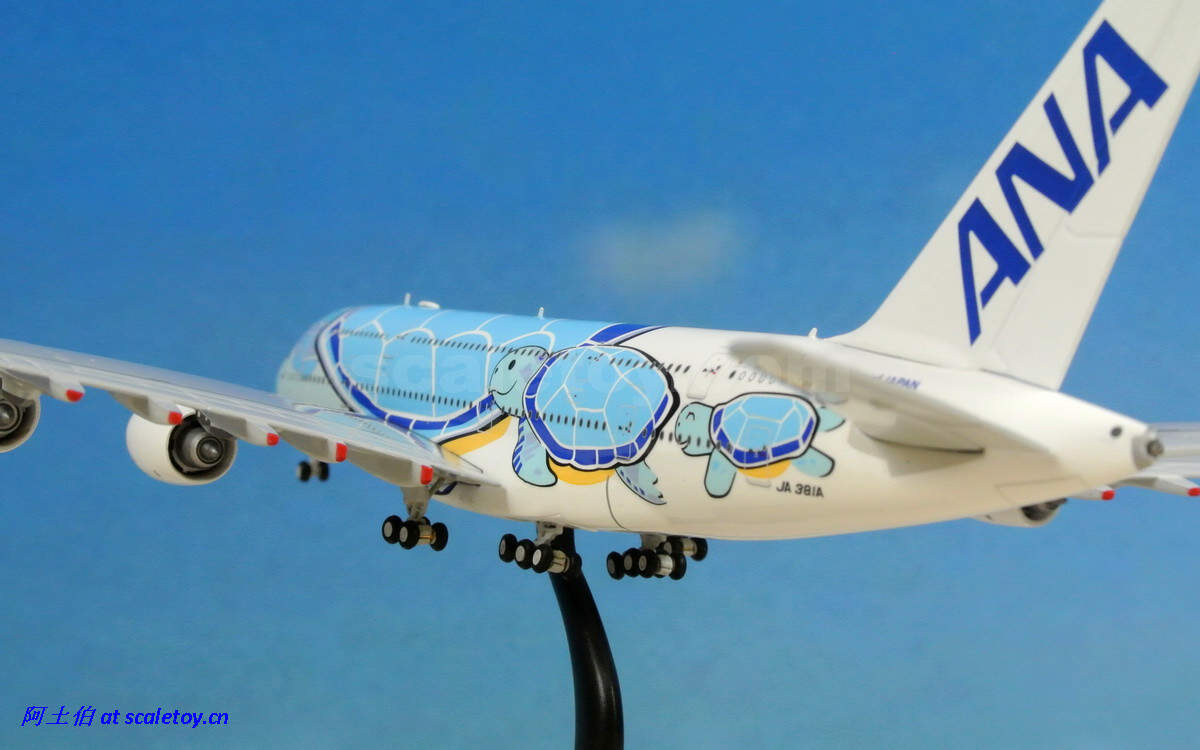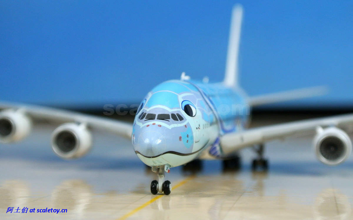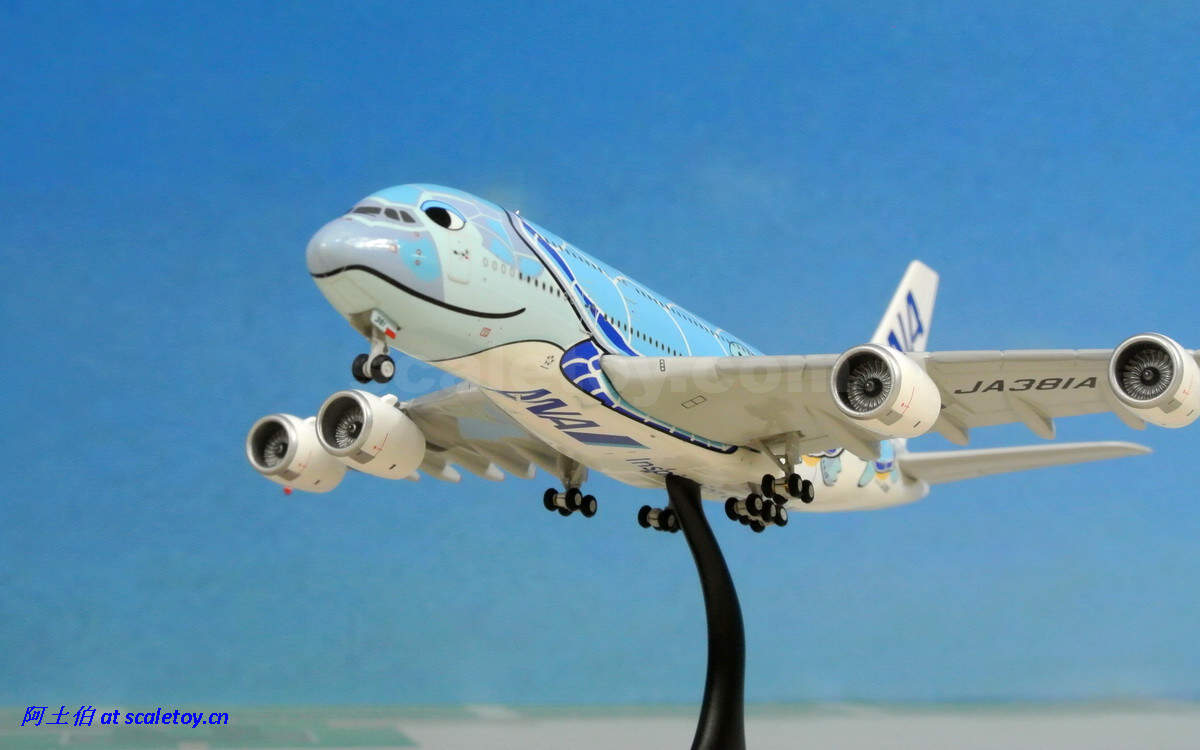 而模型届自然不会错过这个题材(卖点)了。由JC WINGS打造的1/400比例海龟涂装彩绘380也在近期面世。让我们来看下这架飞机模型。由于阿土以往只接触过1/500比例的模型,因此这架飞模是第一次对400比例的测评;看看有些什么提升吧。
