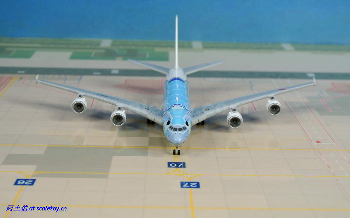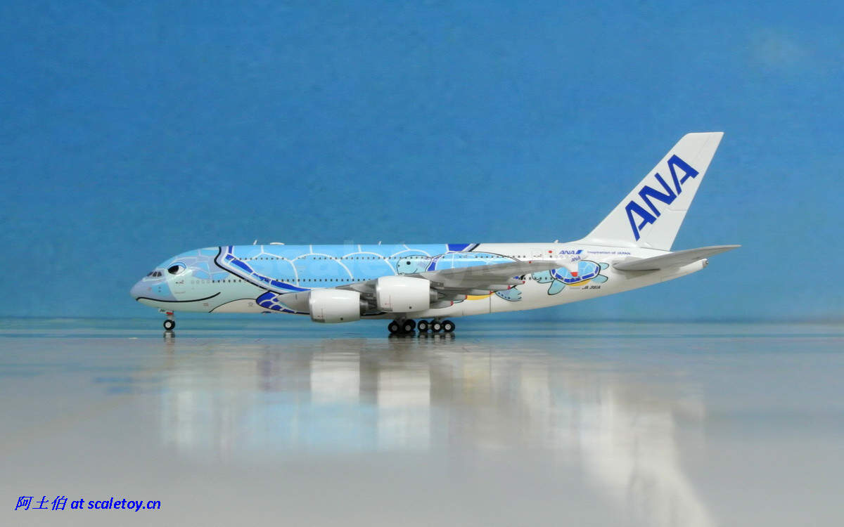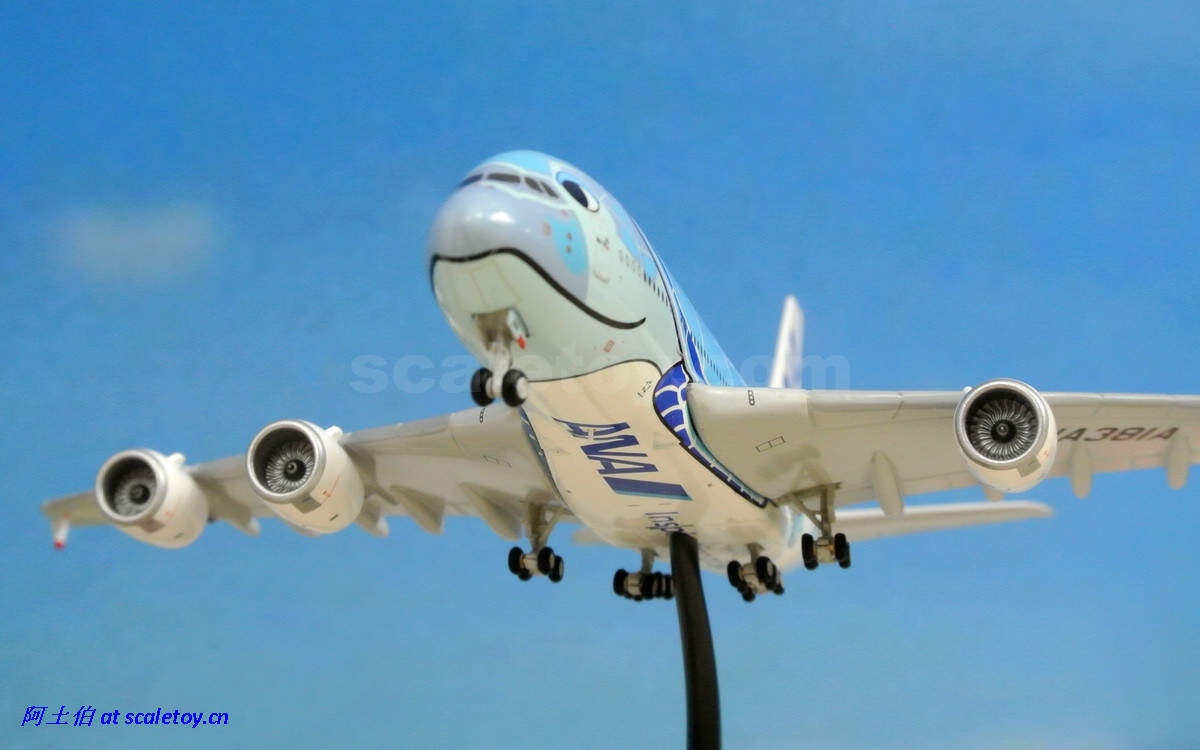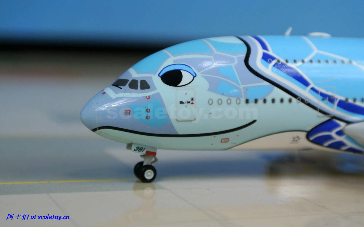 而模型届自然不会错过这个题材(卖点)了。由JC WINGS打造的1/400比例海龟涂装彩绘380也在近期面世。让我们来看下这架飞机模型。由于阿土以往只接触过1/500比例的模型,因此这架飞模是第一次对400比例的测评;看看有些什么提升吧。