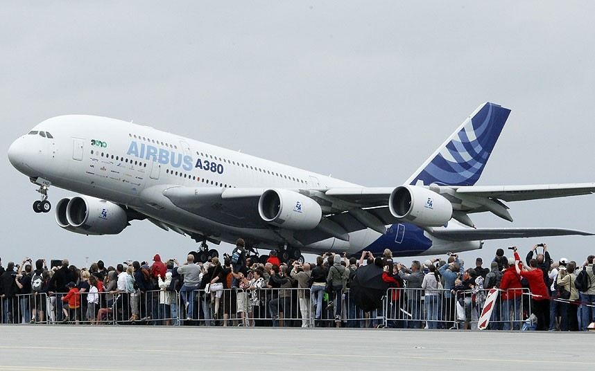 空中客车A380(Airbus A380)是空中客车公司研发的双层4发动机巨型客机。该型号的原型机于2004年中首次亮相。首架A380客机于2005年1月18日在图卢兹厂房举行出厂典礼,并于4月27日试飞成功。同年试飞抵达亚洲的新加坡。2007年10月15日客机首先交付给新加坡航空公司,在10月25日首次载客从新加坡樟宜机场飞抵澳大利亚的悉尼国际机场。