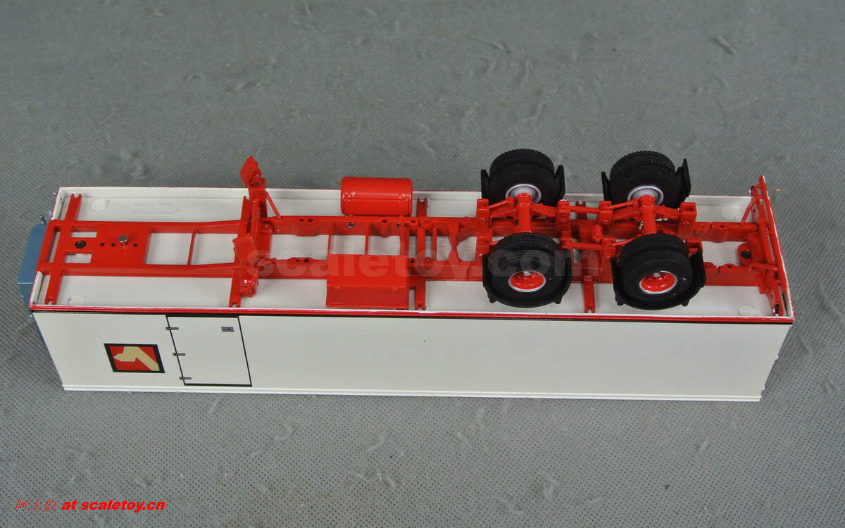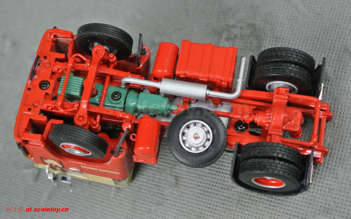 底盘,这个配色看上去更加清晰了,非常简化的架构。两轴不可转向,都弹簧避震。