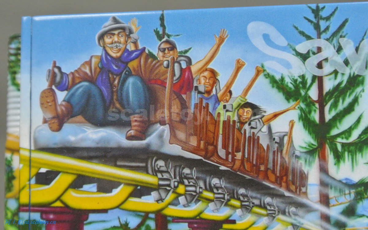 双面,花里胡哨。。。主要构图是游乐场的栈道、滑道和外表倒立的房屋。