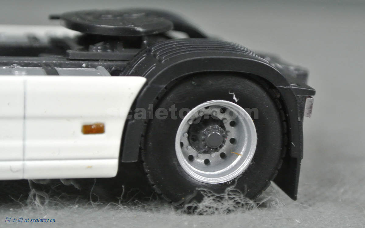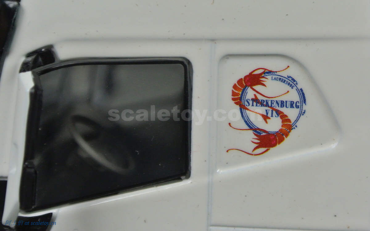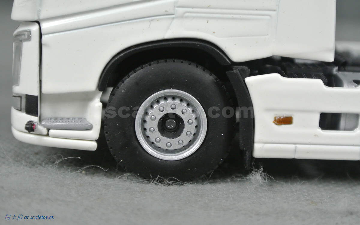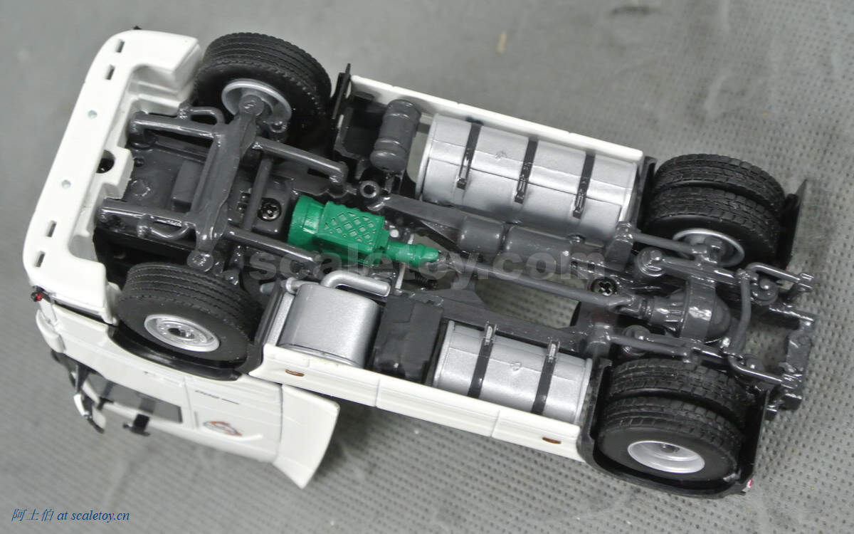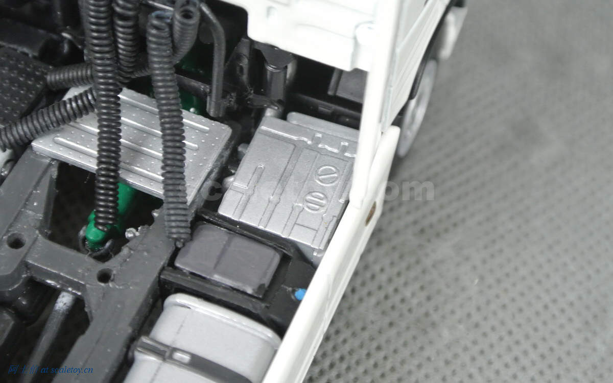 驾驶室内部,方向盘,后视镜外壳还做了分色和凹槽。雨刷、logo等都比较细致。