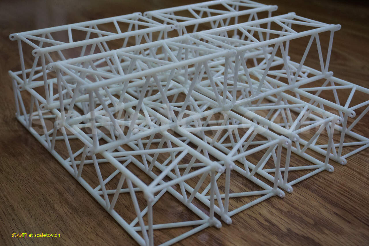 大家好!自从收了LG1750后就认为原包带的杆少,组不了大场面,最近经模友帮忙弄了几个规格的1750桁架,光敏树脂3D打印成型,到手时我捏了、掰了手感还行,趁着周末开始研究组车。