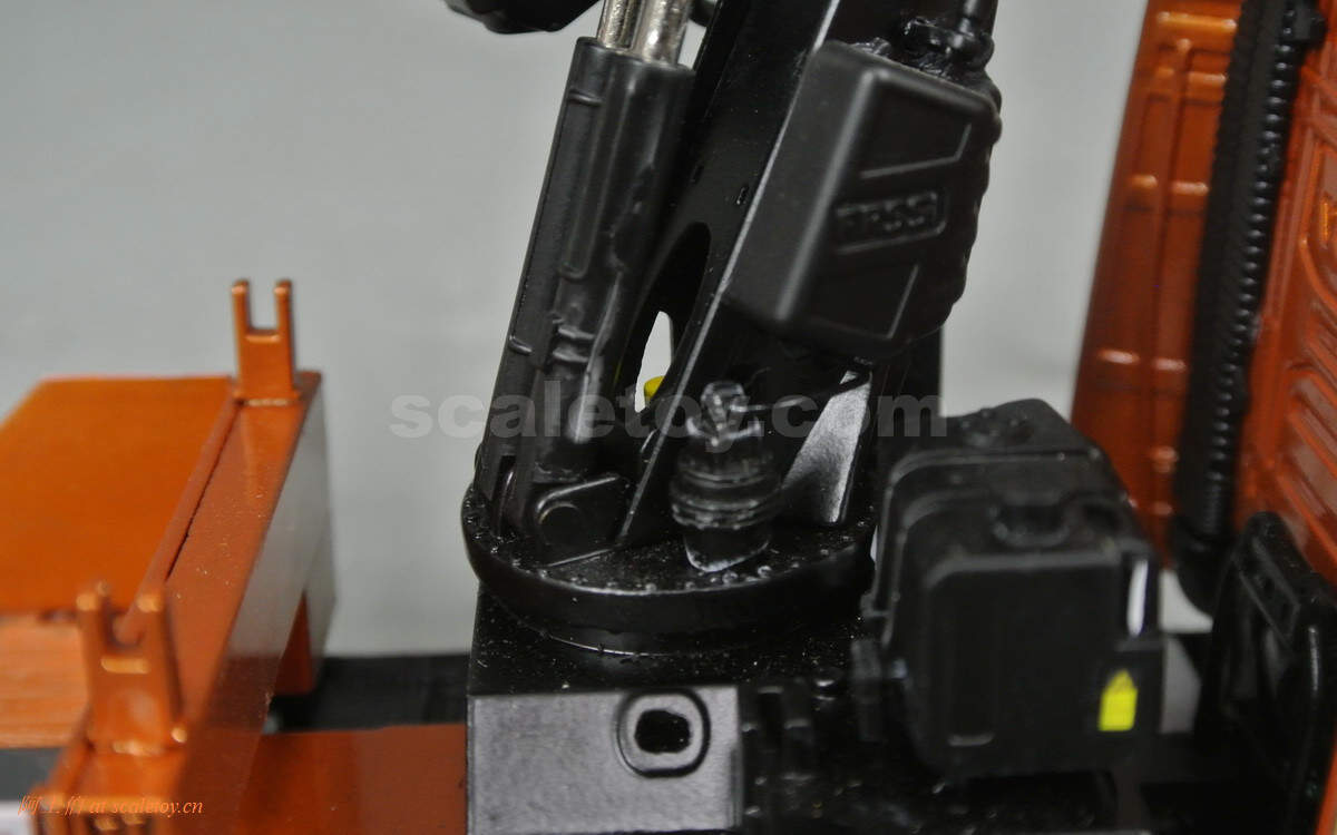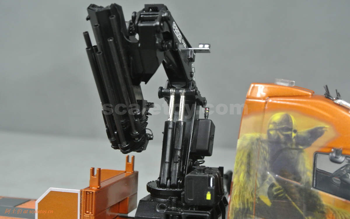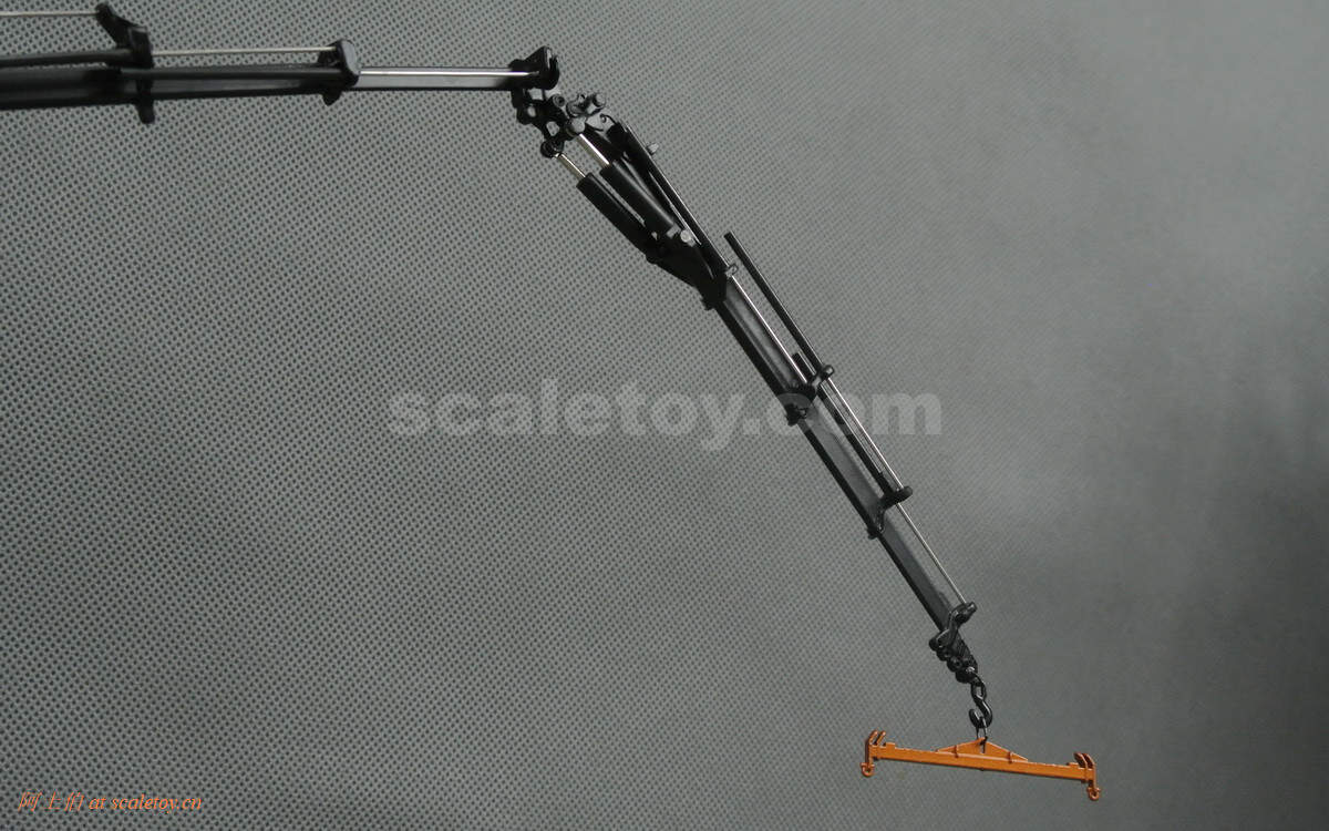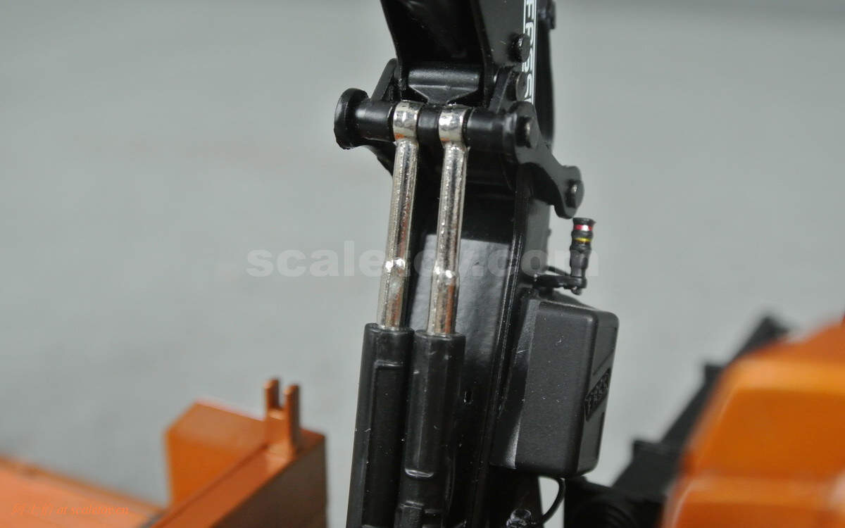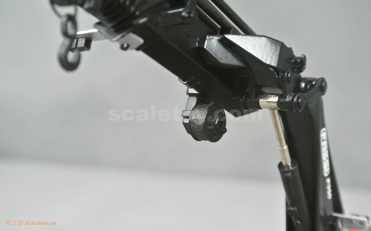 第一个关节采用双液压,第二个单液压,可以看到金属杆根部更粗,支撑能力更强,当然模型把玩也请更加小心哈。