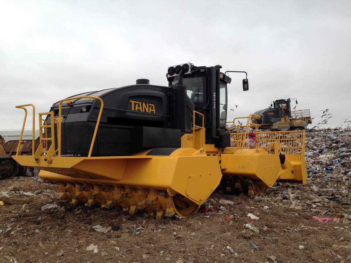 3.鼓或轮直径:鼓的大直径意味着覆盖顶面的较大区域,这导致机器漂浮在废物的顶部。较小的Tana压实轮直径可最大限度地提高机器的地面压力并最大限度地减少机器的下沉。Tana在过去40年中对正确的压实滚筒直径进行了研究,并找到了适当的尺寸来对MSW,塑料,混合废料等弹性材料进行压实。