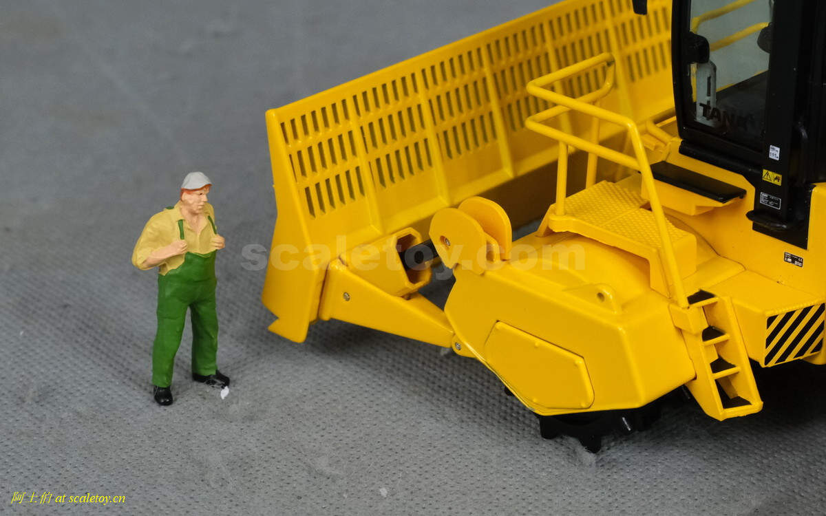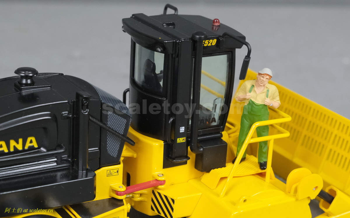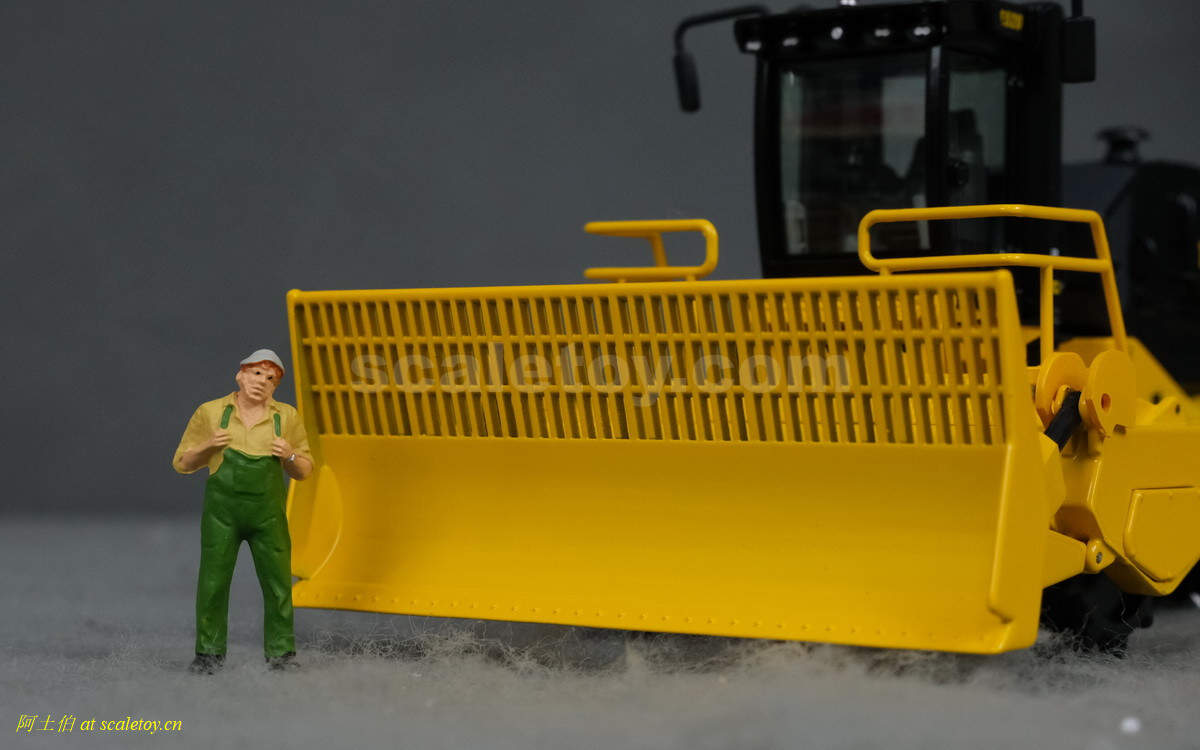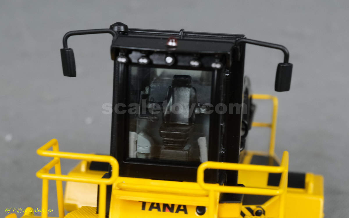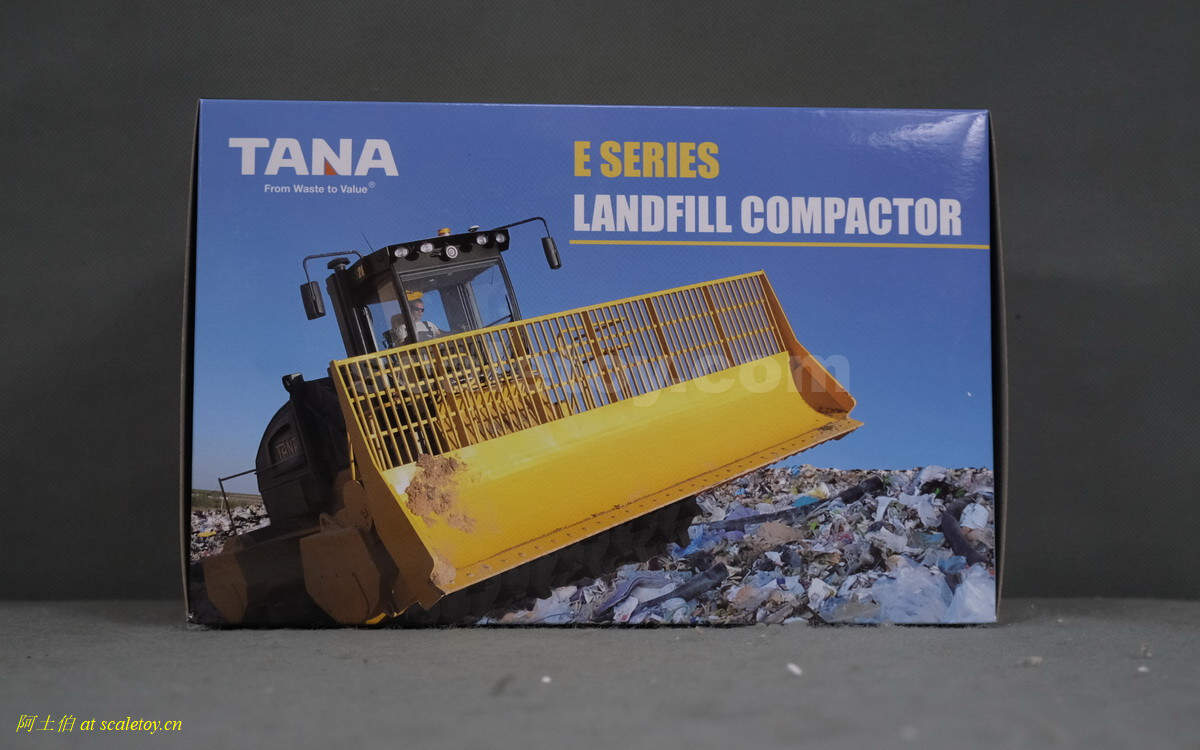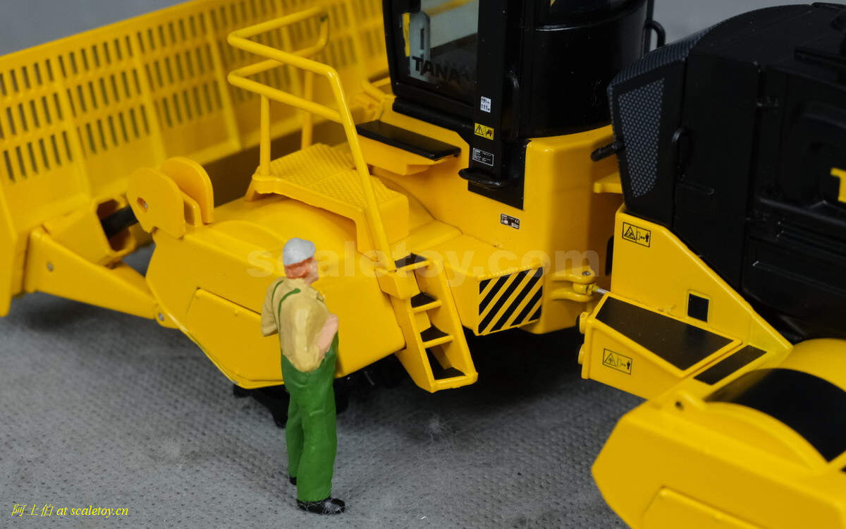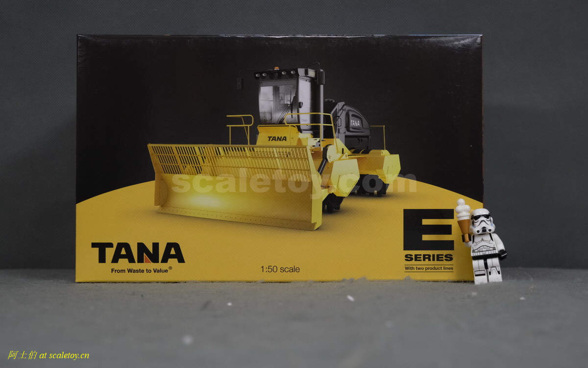 模型对应的是TANA E520型号,属于TANA产品线里面较大型的一款,自重52吨,长度9.23米,宽度5米,高度4.32米,最大压实强度255千牛。前面的推铲宽5米,高1.96米。两个压实滚轮宽3.8米,每个滚轮上面有110个20厘米高的压齿。工作时速5-7公里/小时。