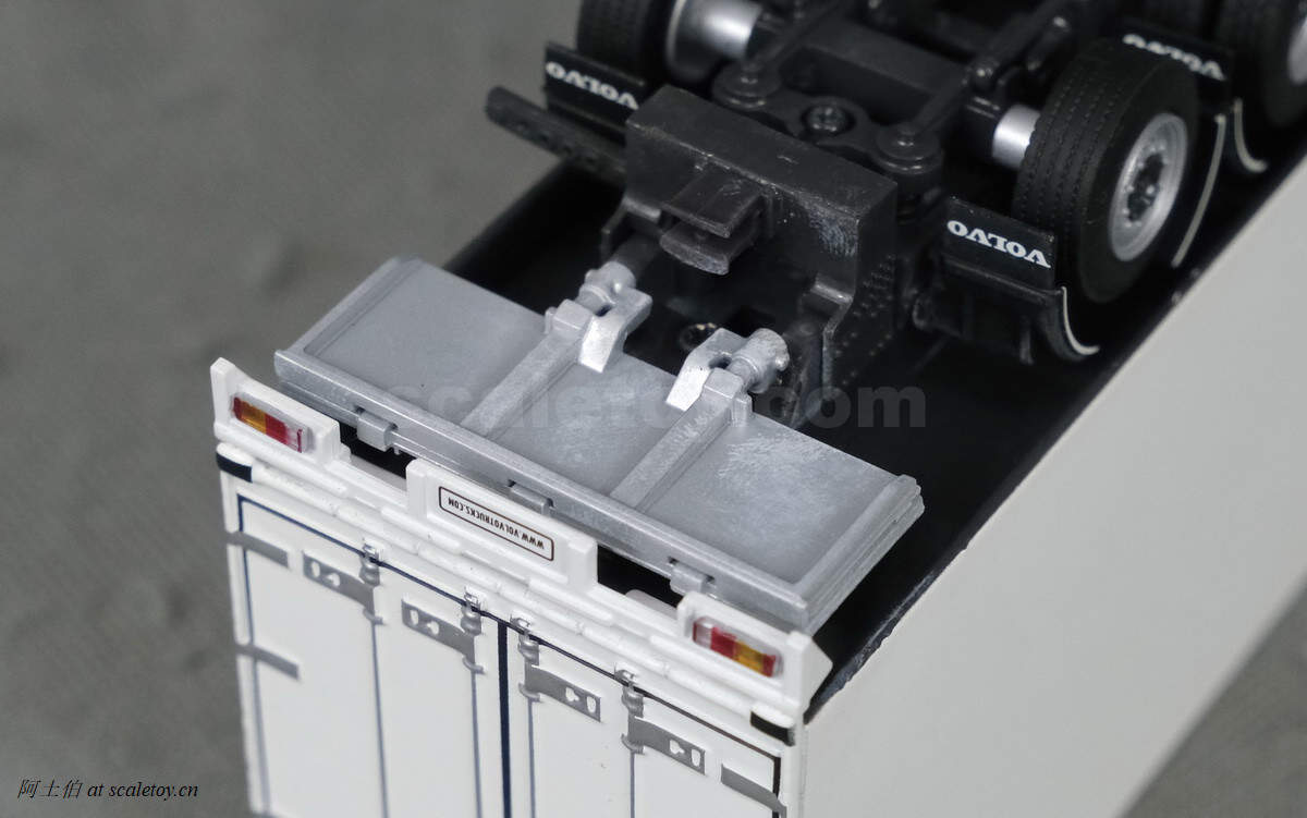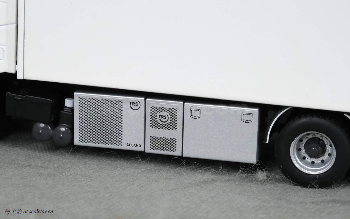 卡车 truck[WSI] VOLVO FH4 GLOBETROTTER XL RIGED BOX / CURTAIN / REFRIGERATED TRUCK COMBI 沃尔沃厢式货车 作者 阿土伯 2019年7月31日 1 分钟阅读 0 这是一款WSI的white line系列产品,沃尔沃FH4底盘的厢式货车。模型编号03-2015,比例1/50。 证件照。纯白涂装。 车顶的天线,侧面有吸气口 驾驶室的内部结构 前脸是沃尔沃的FH,方正,线条都是平直为主。车牌直接用了volvo卡车的网址。 踏板和前轮毂 侧面车底的各类设备,冷藏空调,等。 右侧面主要是油箱 后轮毂 后视镜反光 车尾,货箱门不可打开 尾灯等细节 沃尔沃发动机 底盘,第二轴驱动,前轴转向,角度较大 第三轴可以提升卡住 在后部还有一个装卸用的尾板结构,只是没有可动性 如果有较好的动手能力的话,可以搞这个产品线的模型,自己DIY哦。 标签: FH4VOLVOWSI
