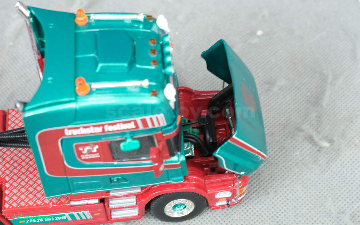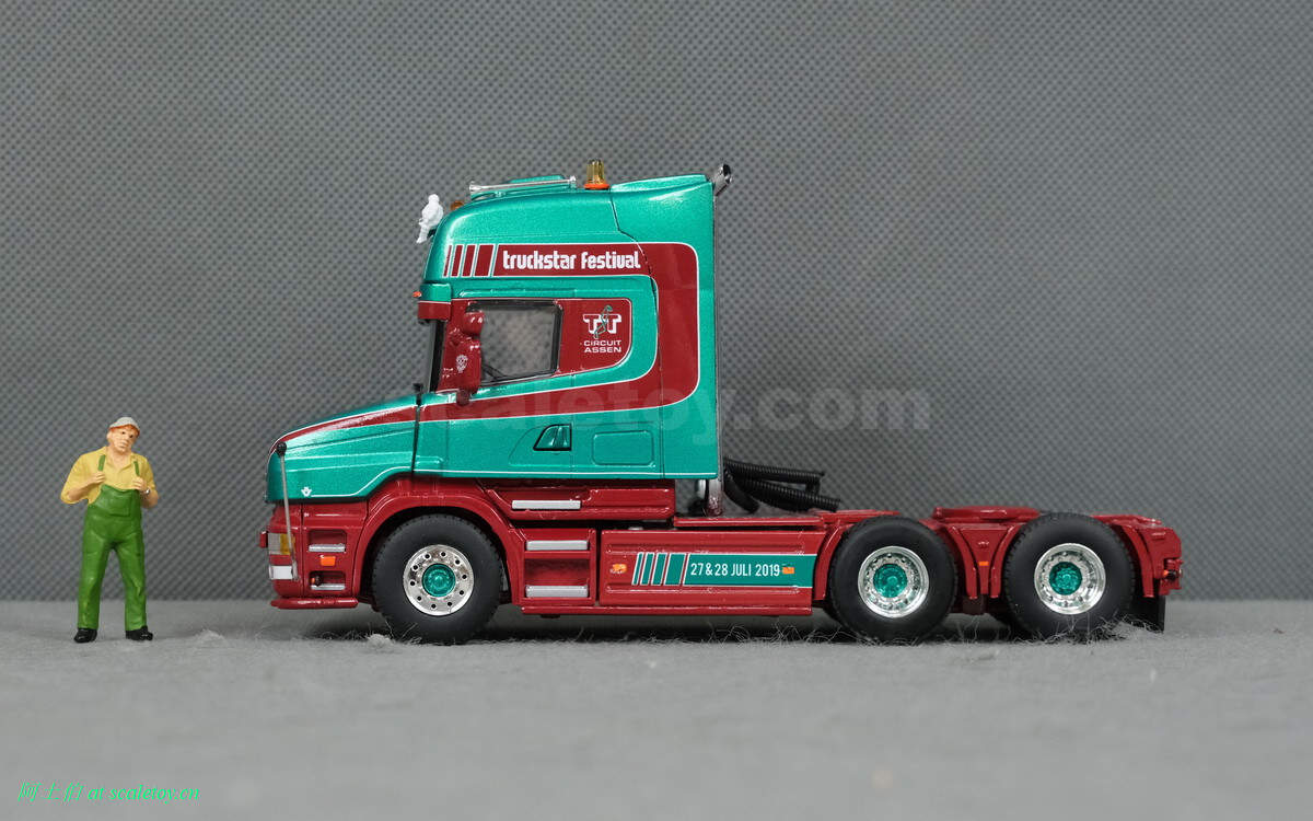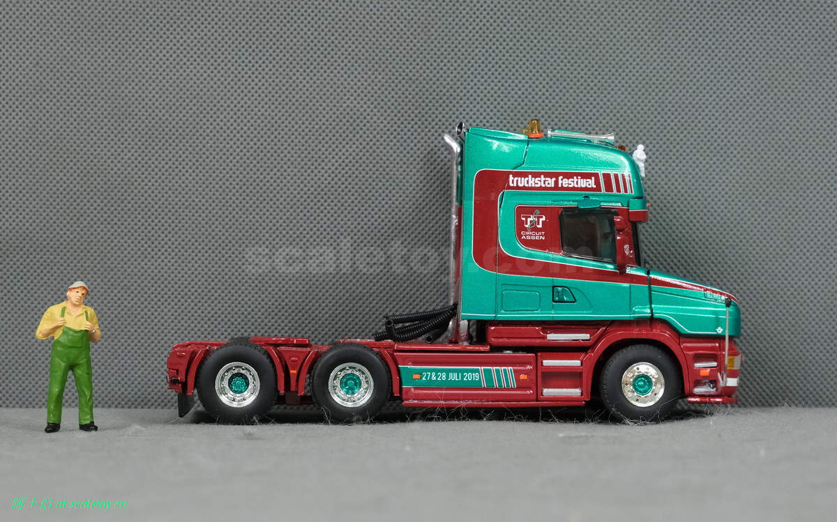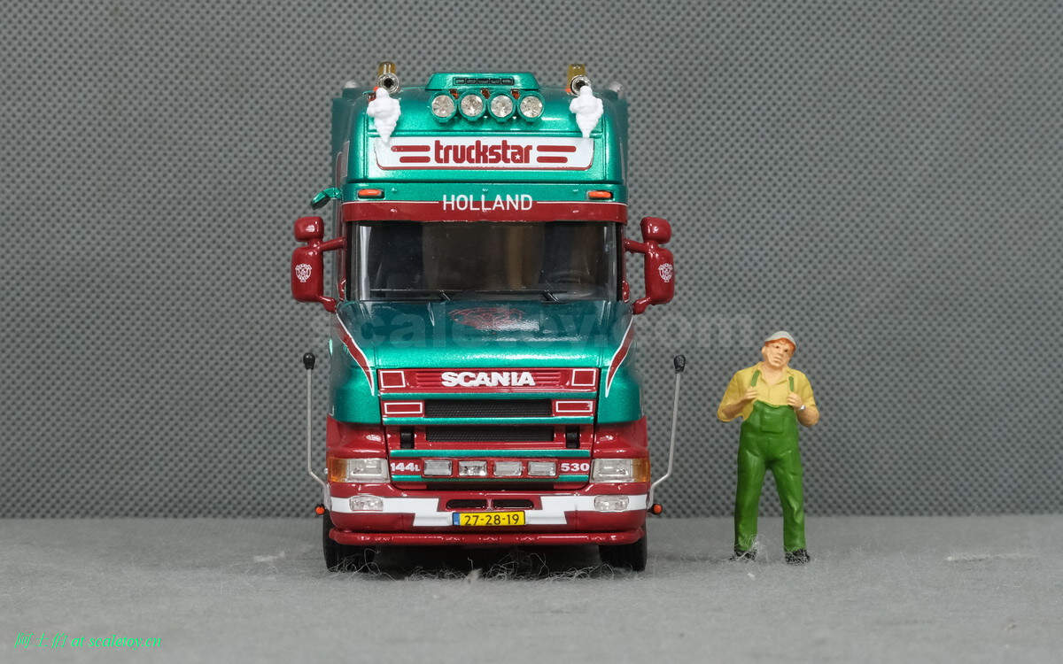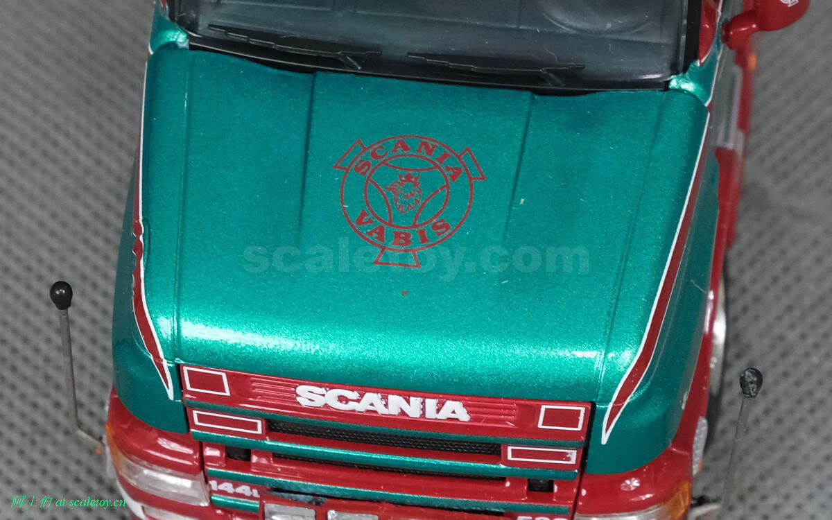 而本年WSI的展会模型则是一台斯堪尼亚4系列的鱼雷长头Topline 144-530,挂一台三轴的Berdex牲畜运输挂车。模型编号01-2881,比例1/50。