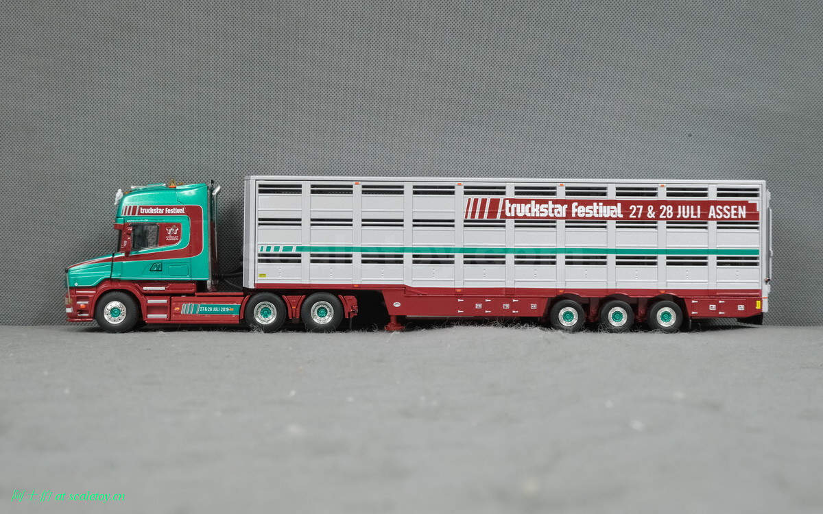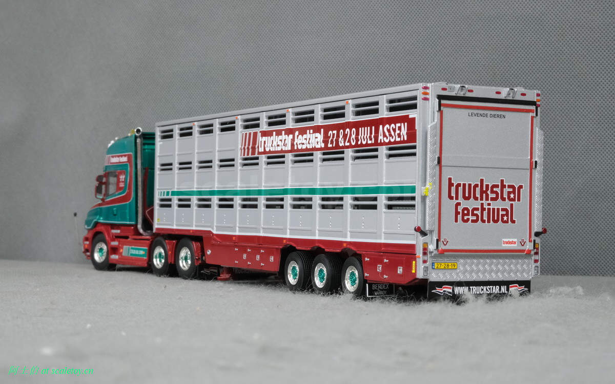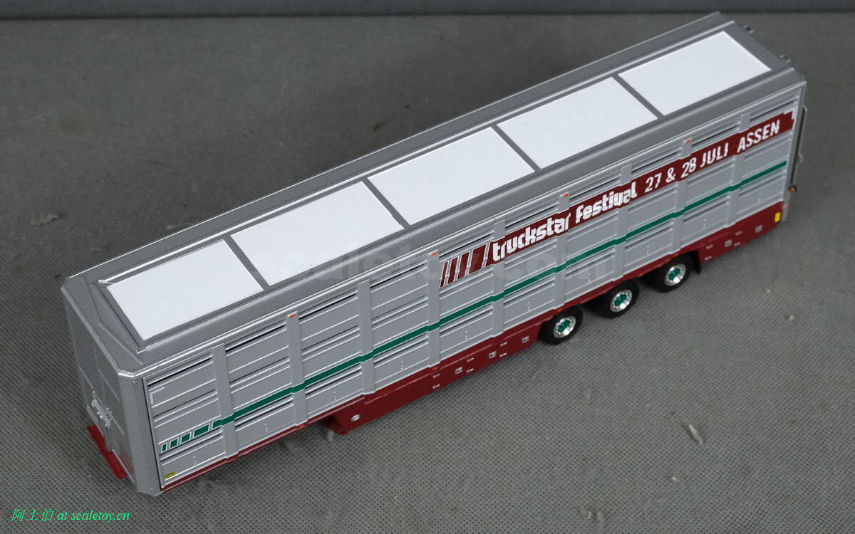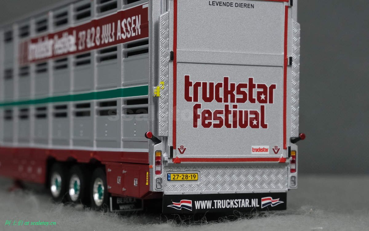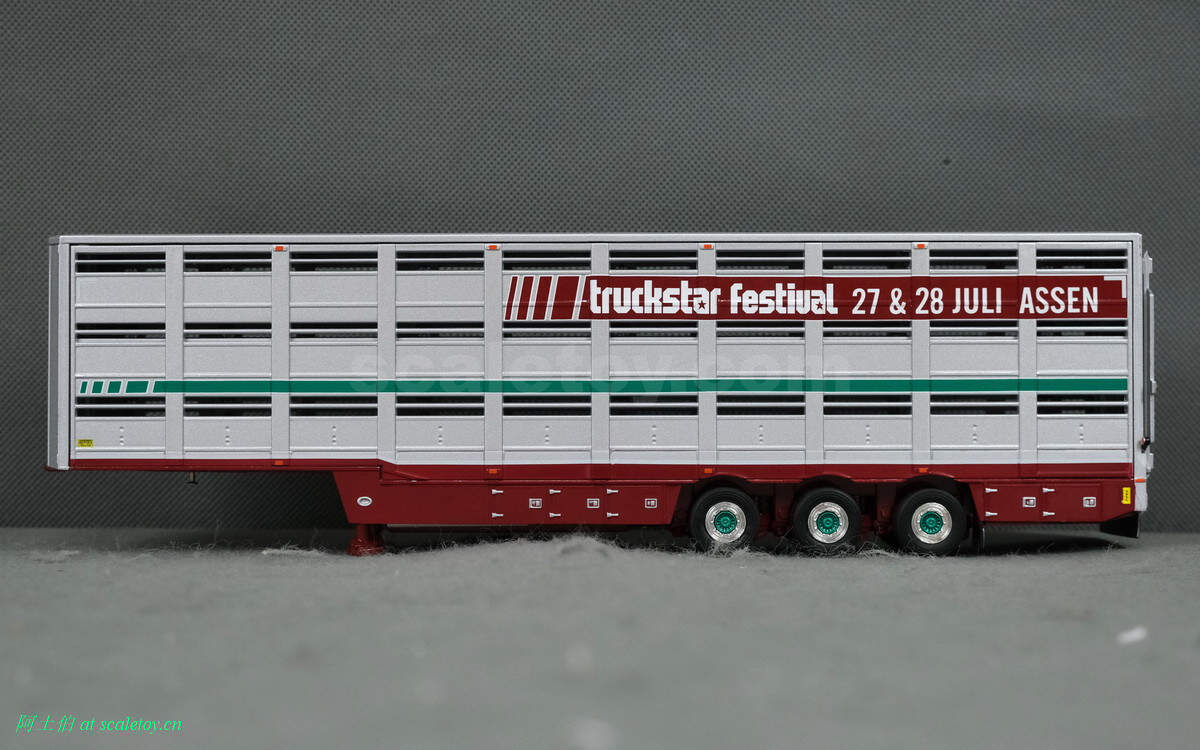 牲畜运输挂车,之前本站介绍过。这里是三轴,并涂装了本次卡车节的信息,举办时间和地点。