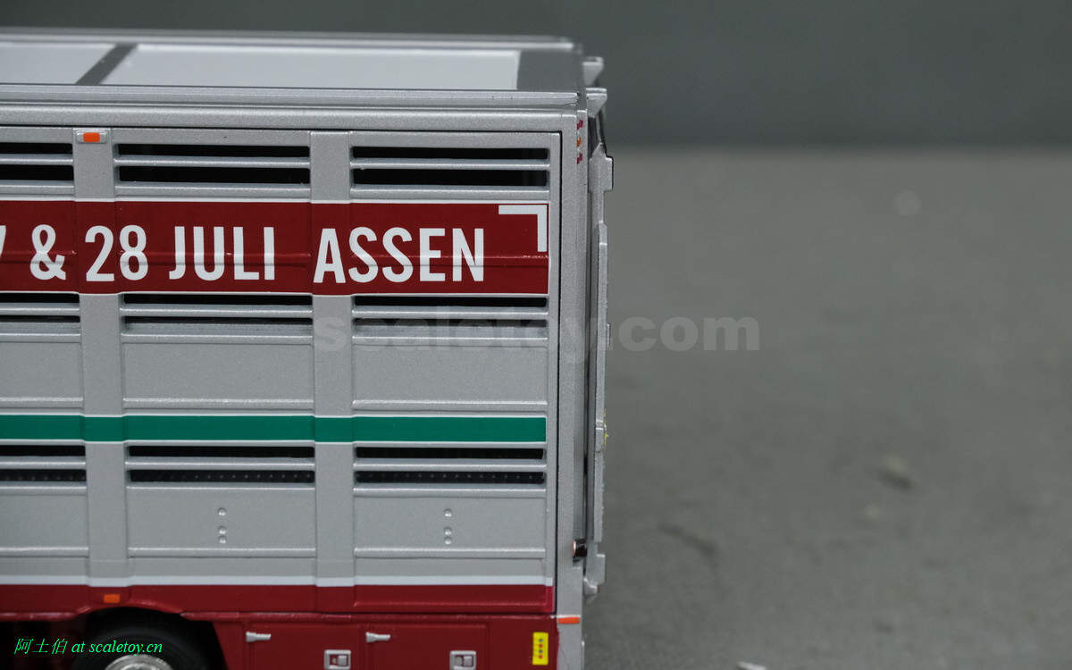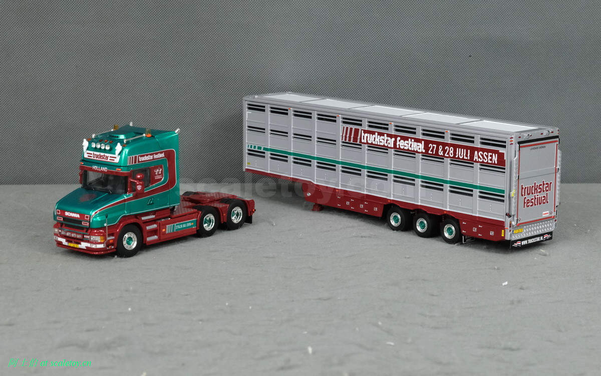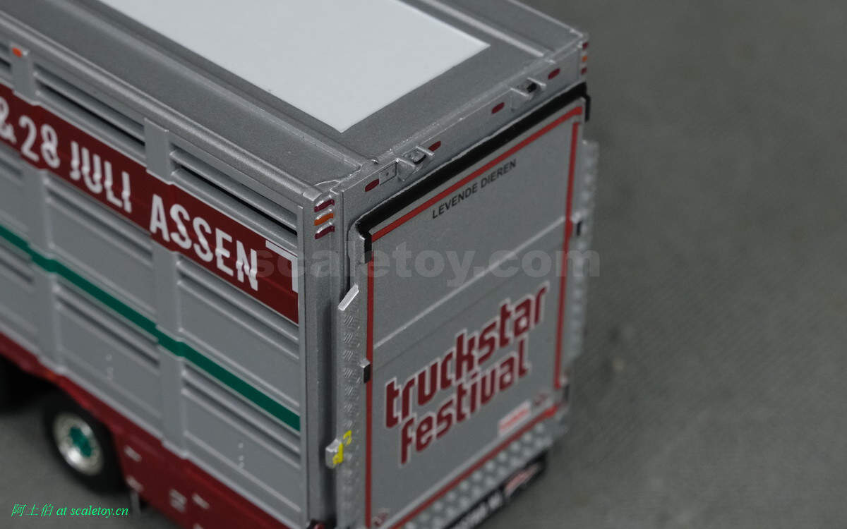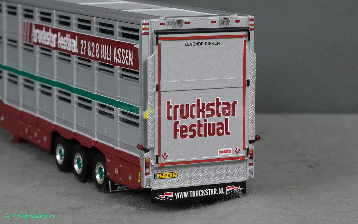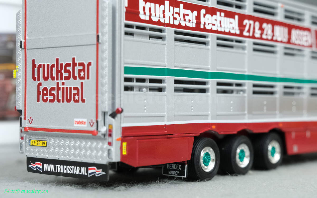 牲畜运输挂车,之前本站介绍过。这里是三轴,并涂装了本次卡车节的信息,举办时间和地点。