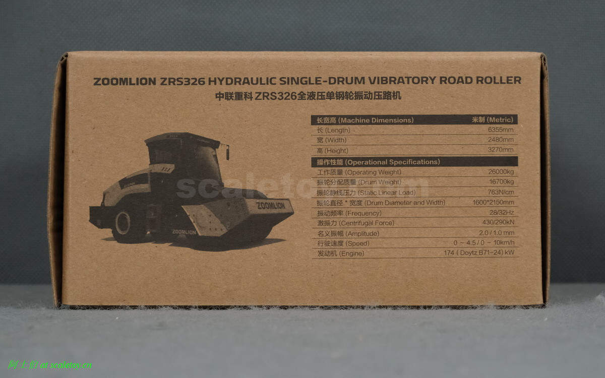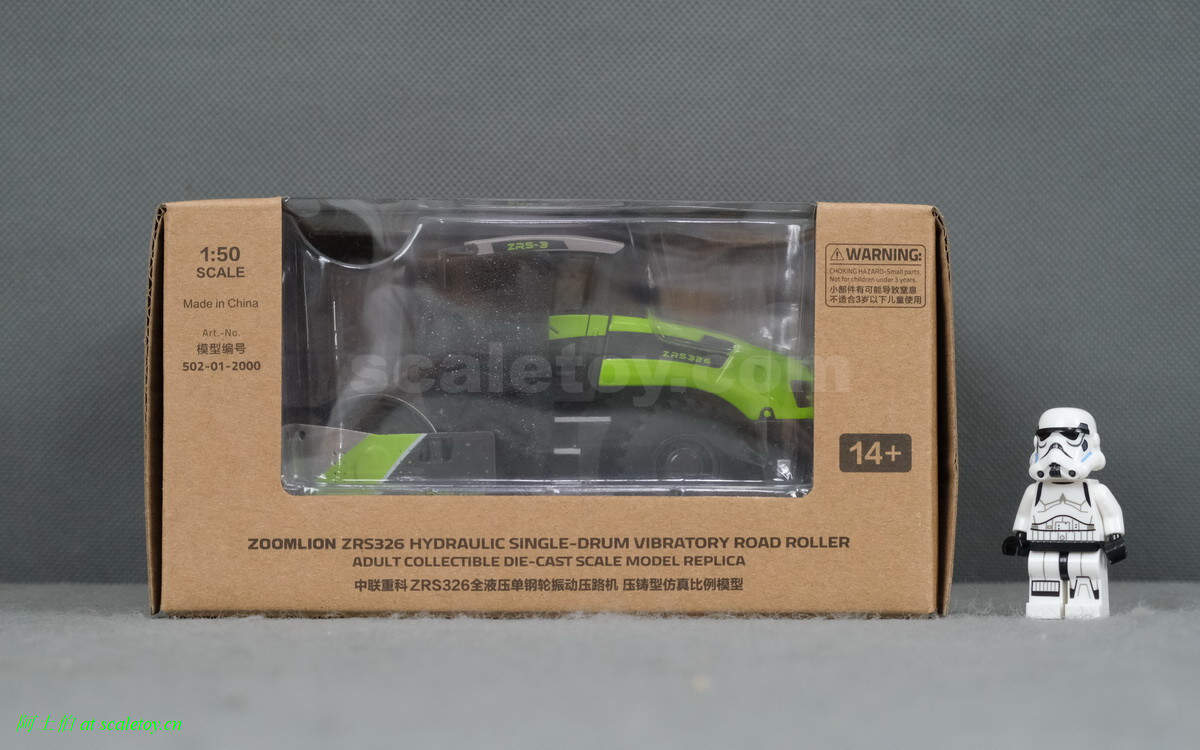 继续介绍一款中联重科ZRS326全液压单钢轮震动压路机模型。模型仍然是其辉制作,模型编号502-01-2000,比例1/50。