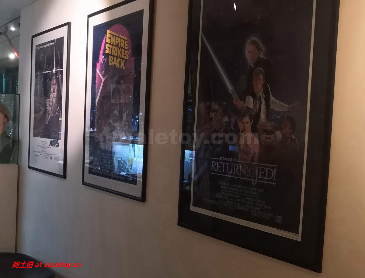 中间有一段连接区域没有展柜,墙上的画也是主题,这里是星球大战中间三部曲的海报