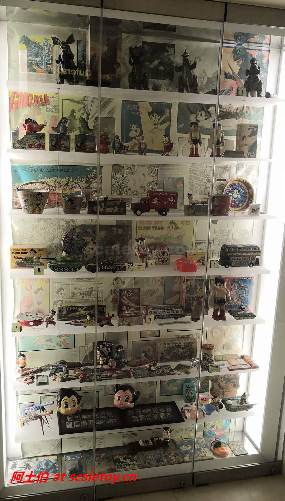 在五楼下四楼的半层楼梯处也有一个展柜,主要是阿童木系列: