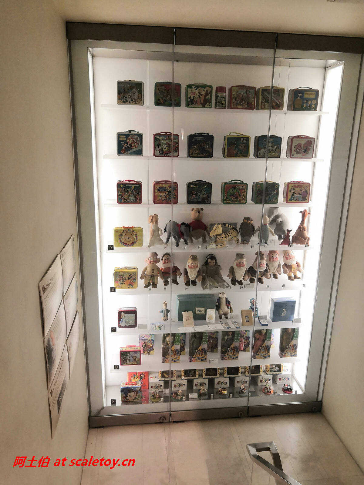 三楼去二楼的半层展柜,有七个小矮人等,上面的系列小包包才是当年价值不高但却极少有人留心的收藏吧。。。