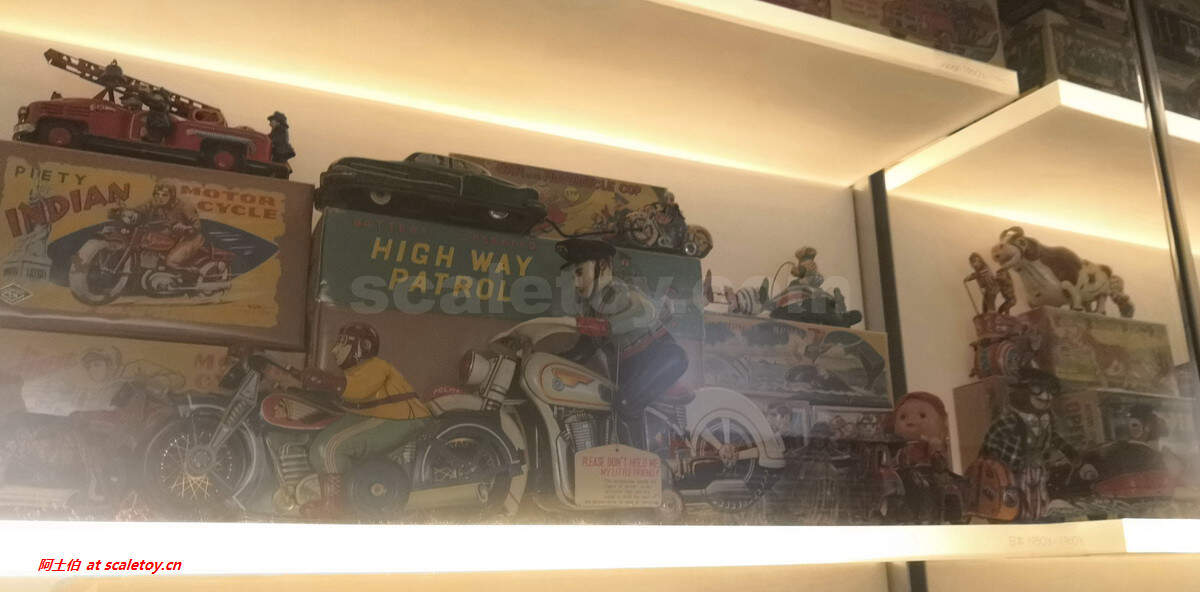 这一层的主要收藏类型是铁皮玩具。虽然现在国内也慢慢有点流行复古感觉的铁皮玩具,类似机器人,发条青蛙这些,但在这里,居然有那么多不同样子的铁皮玩具,真的是叹为观止啊,大长见识了。。。。而且都按照不同的主题摆放归类了,看来馆主是个多少年的铁皮玩具铁粉了