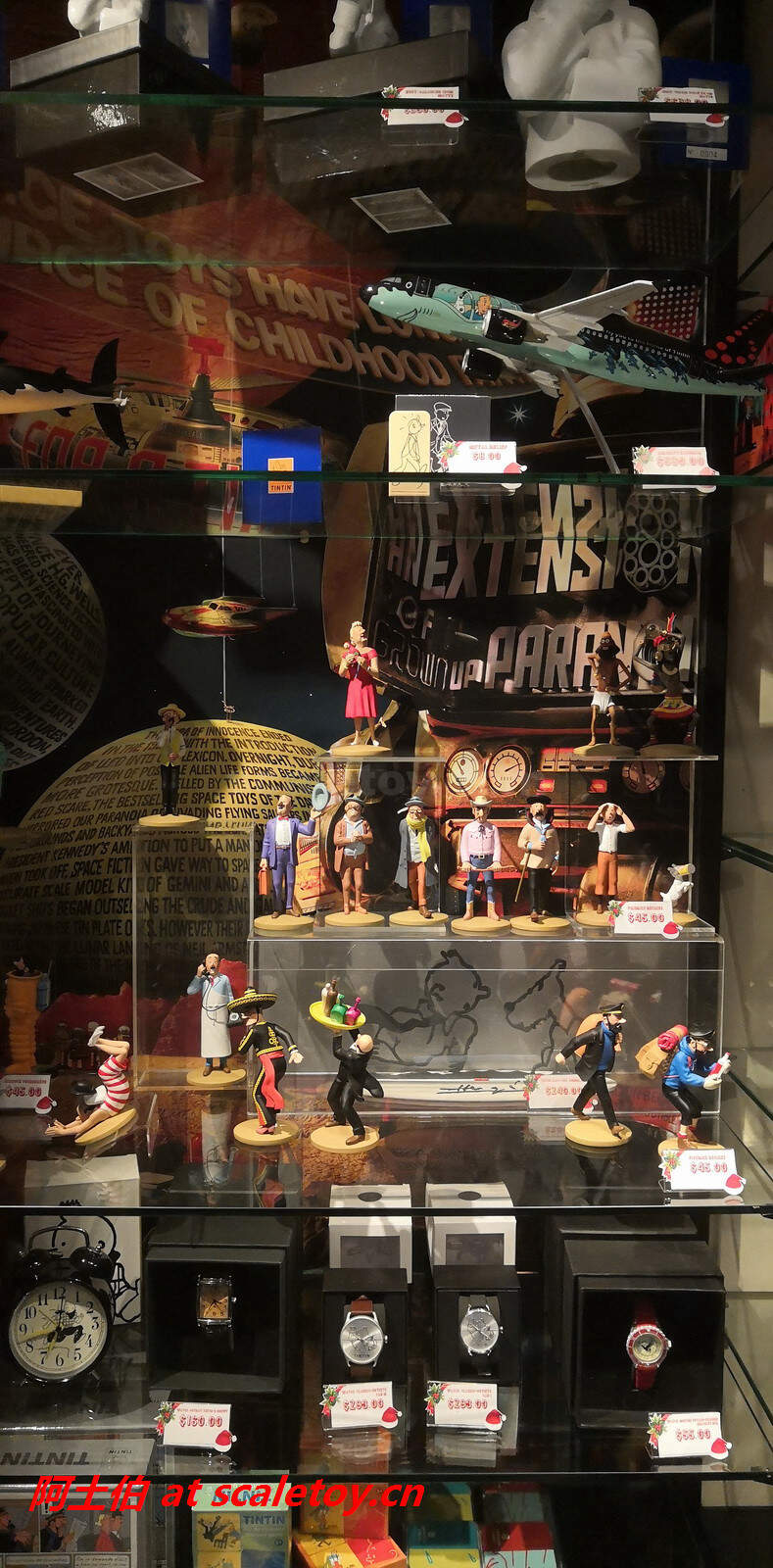 进门处展柜,以猫和老鼠、丁丁历险记、大力水手主题为主