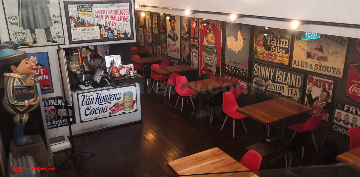 从一层可以楼梯下到B1的主题餐厅,墙上布满各类招贴画,也是收藏系列