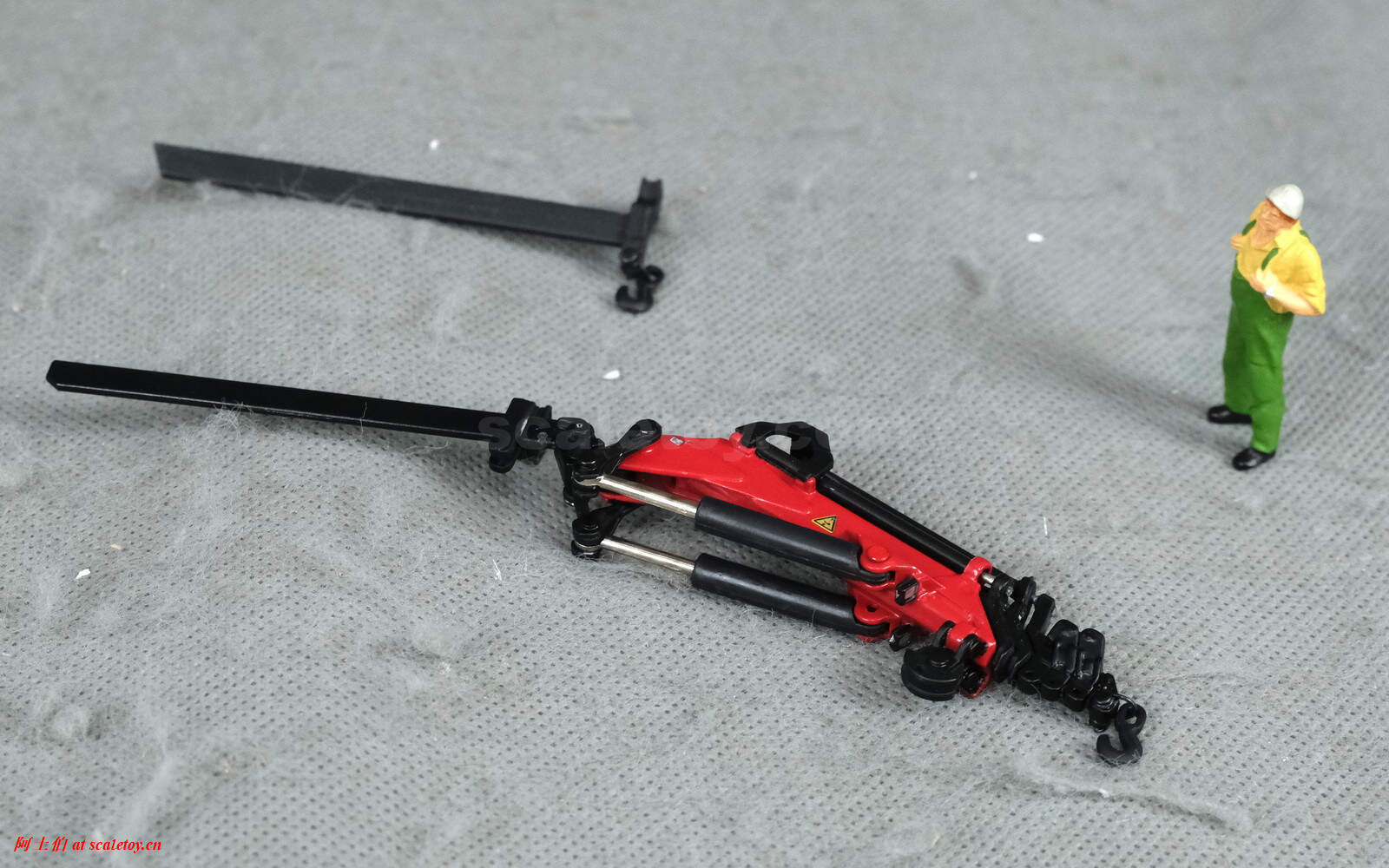 慢慢展开随车吊,吊臂分三段单液压可变幅,