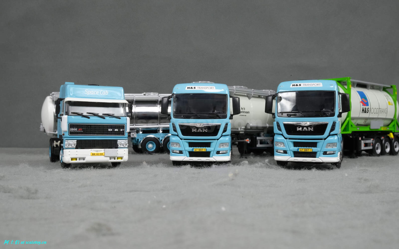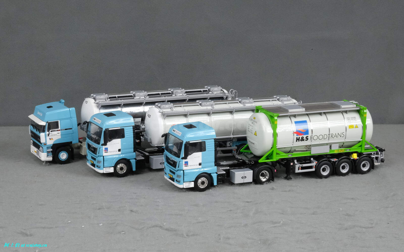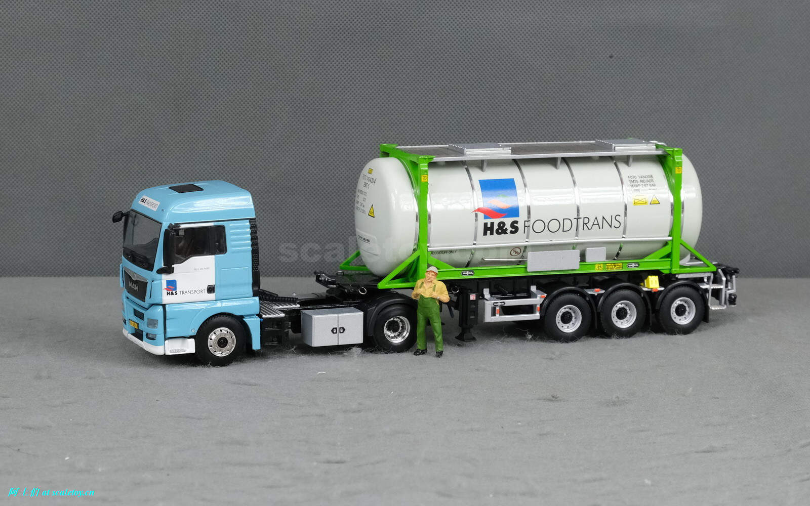 继续介绍H&S公司涂装的第三款模型。原型为MAN TGX XLX EURO 6拖头挂三轴集装箱托架,配一个20呎集装箱槽罐。以下为网上类似的相关图片,并非原车。