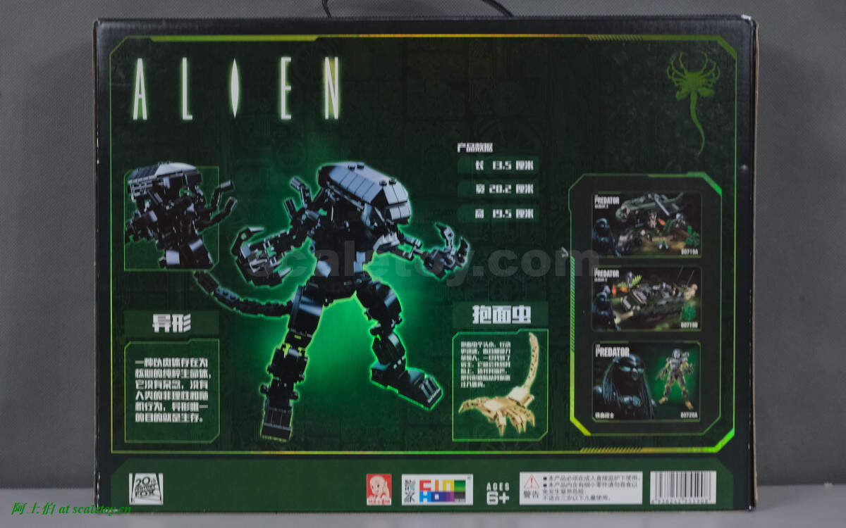 包装模式还是带拎手的纸盒,纸盒的印刷还是非常精美的,配色和相关图文直接采用了电影异形的元素,右上角的20世纪福克斯logo,大概意味着版权授权。