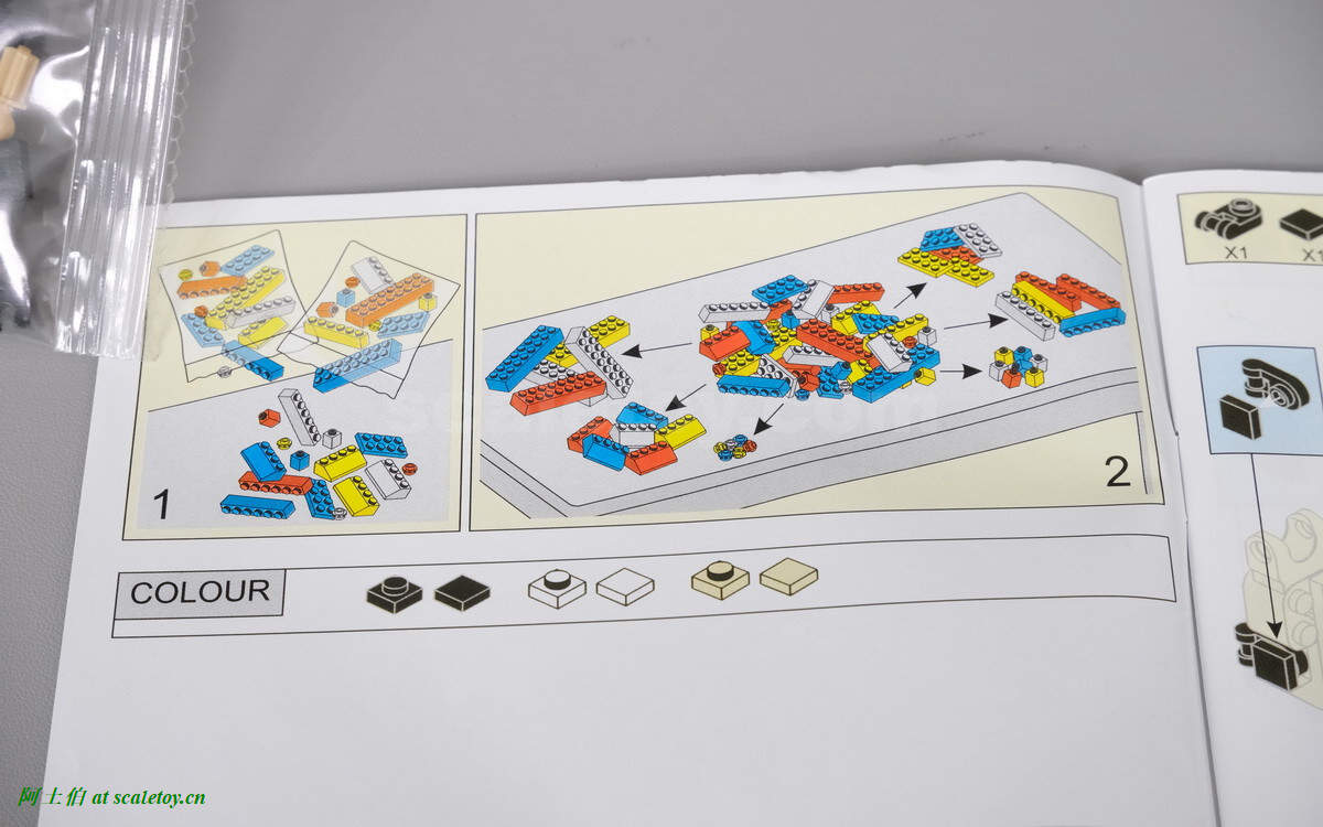 说明书,意思是把零件按照形状预先分类,然后开始拼搭,会比较简单。下方列出本模型只有三个零件颜色。