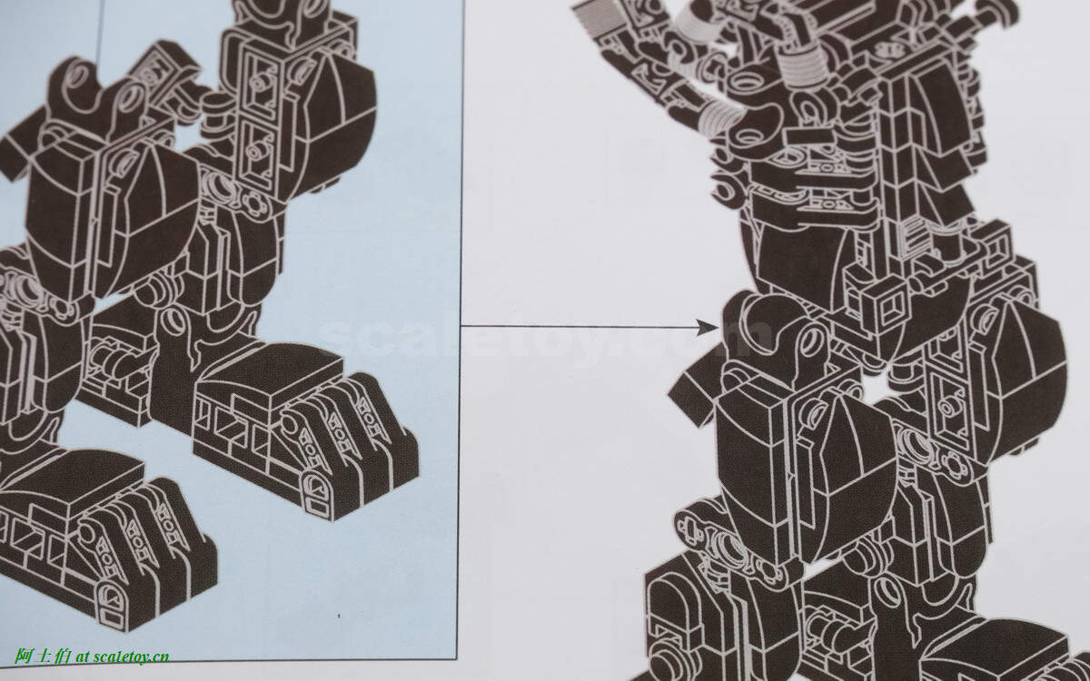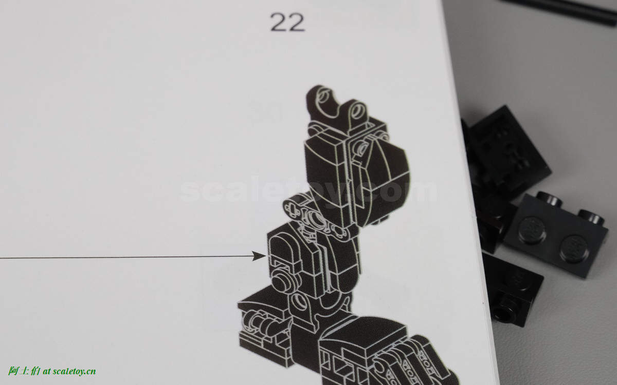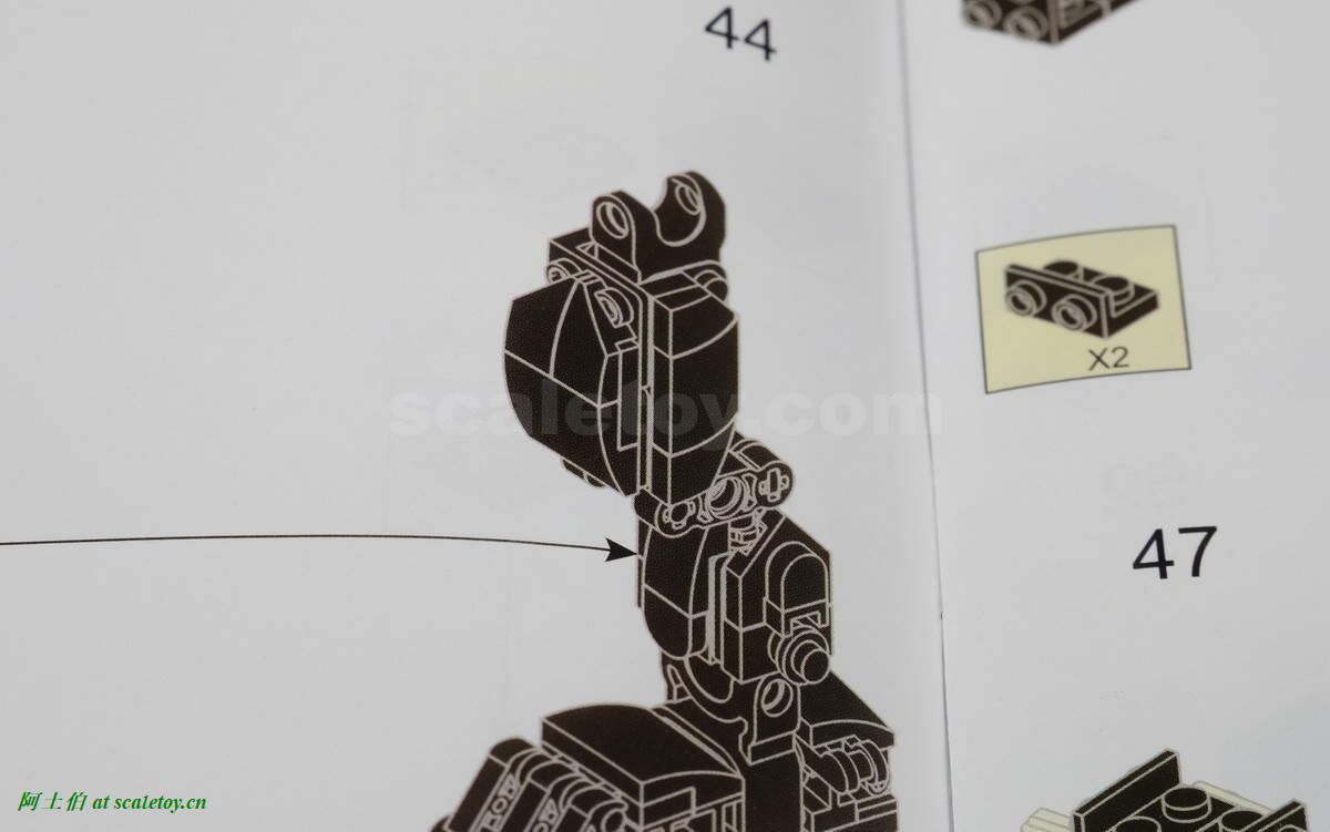 但实际前文两条腿组装(22、44步完成图)均看不出有突出结构。