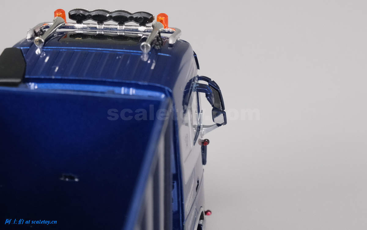 车头部分,涂色的金属感很强烈,头顶和前脸下方都加装了前灯组