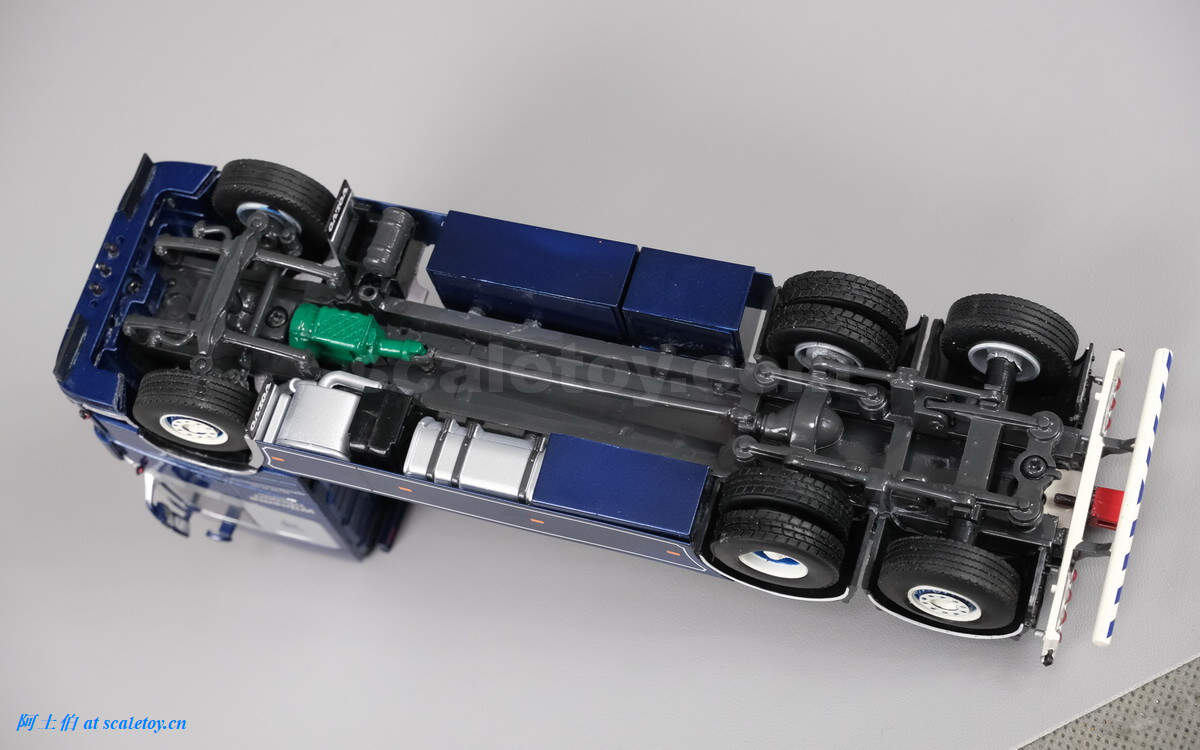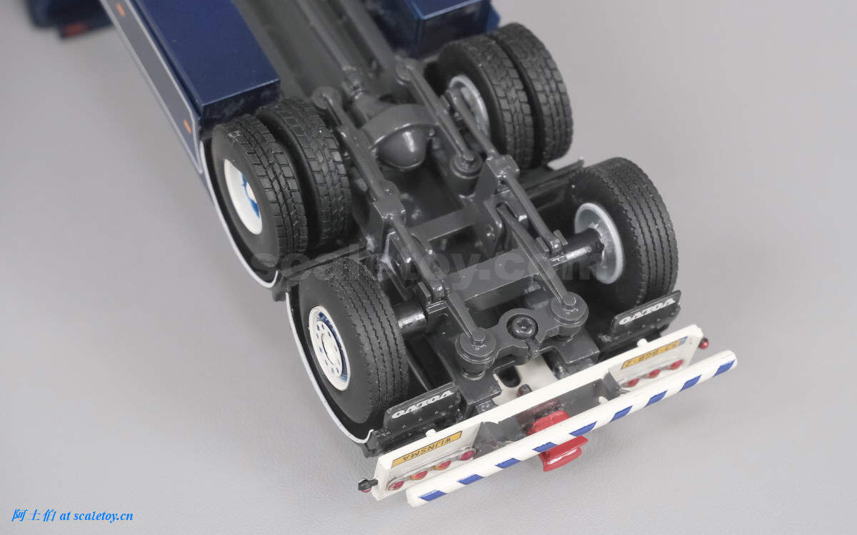 底盘,三轴均带弹簧避震,后两轴不可转向。