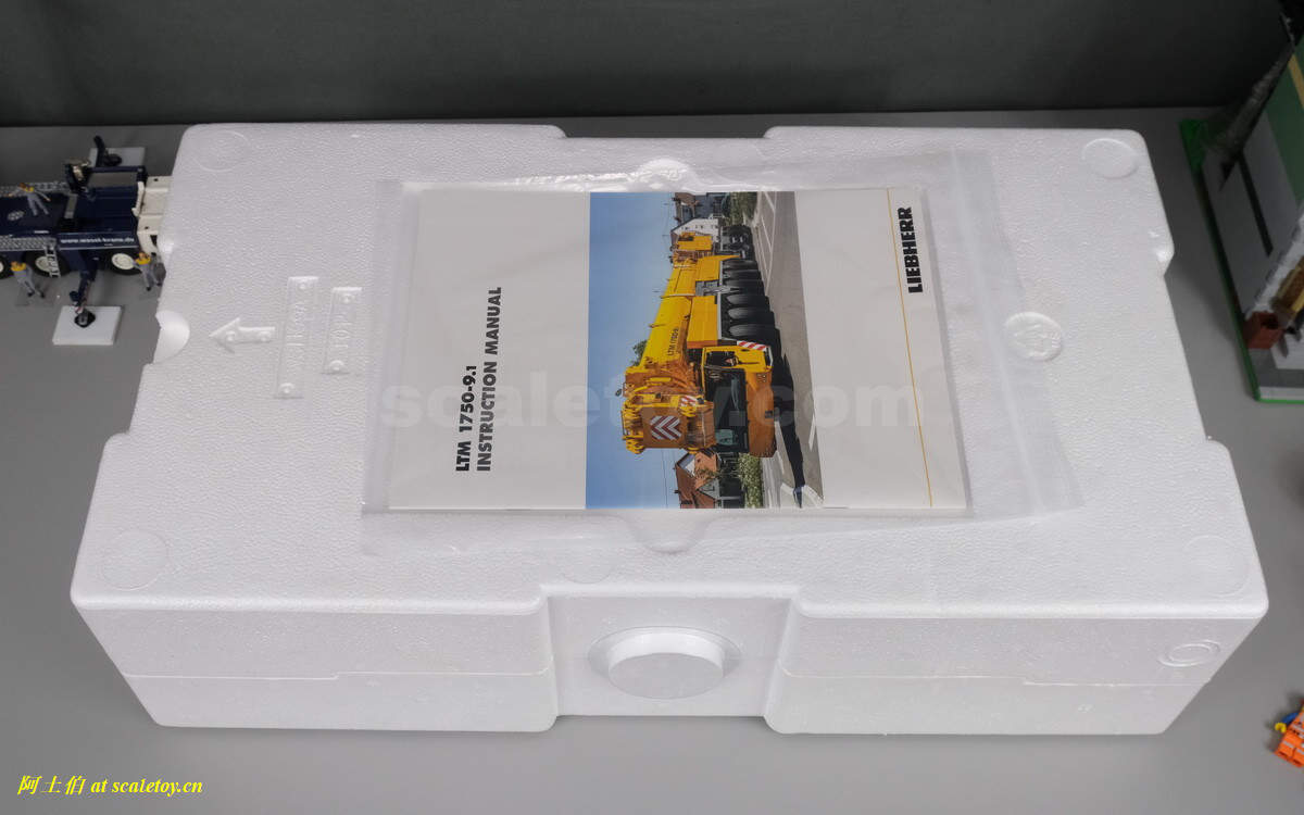 内部是泡沫盒,四面用塑料圆帽扣紧上下层,有顶面、底面提示文字,以及车头方向箭头。附一本模型组装说明。