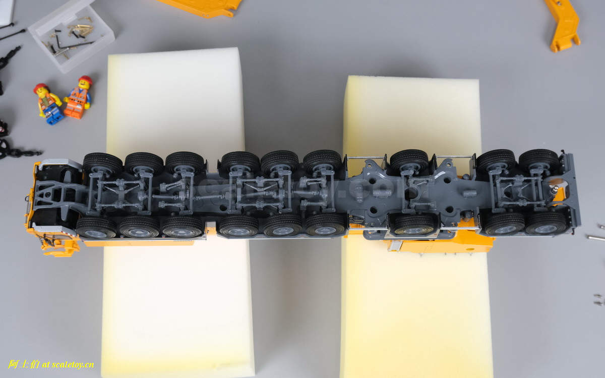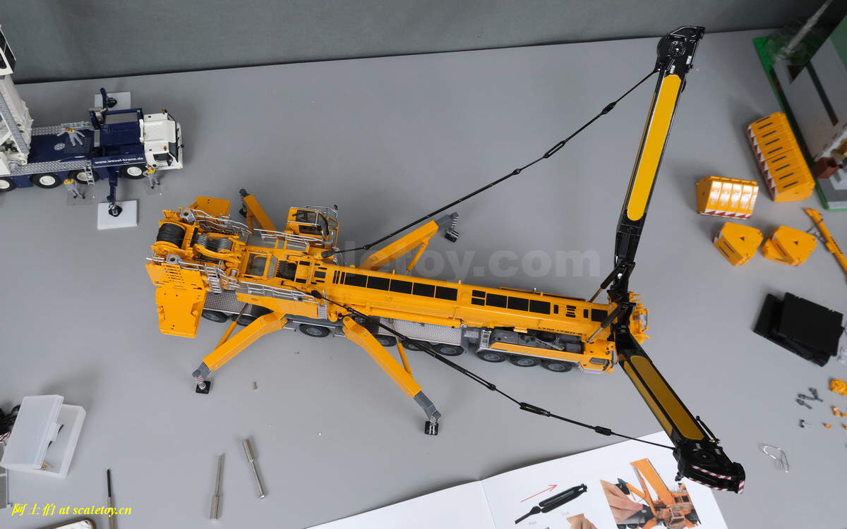 接下来要伸出主臂,不得不转场了,工位太小太杂,很难拍摄这样较大尺寸的吊车(翻译过来就是比较懒,不想好好整理工位。。。)