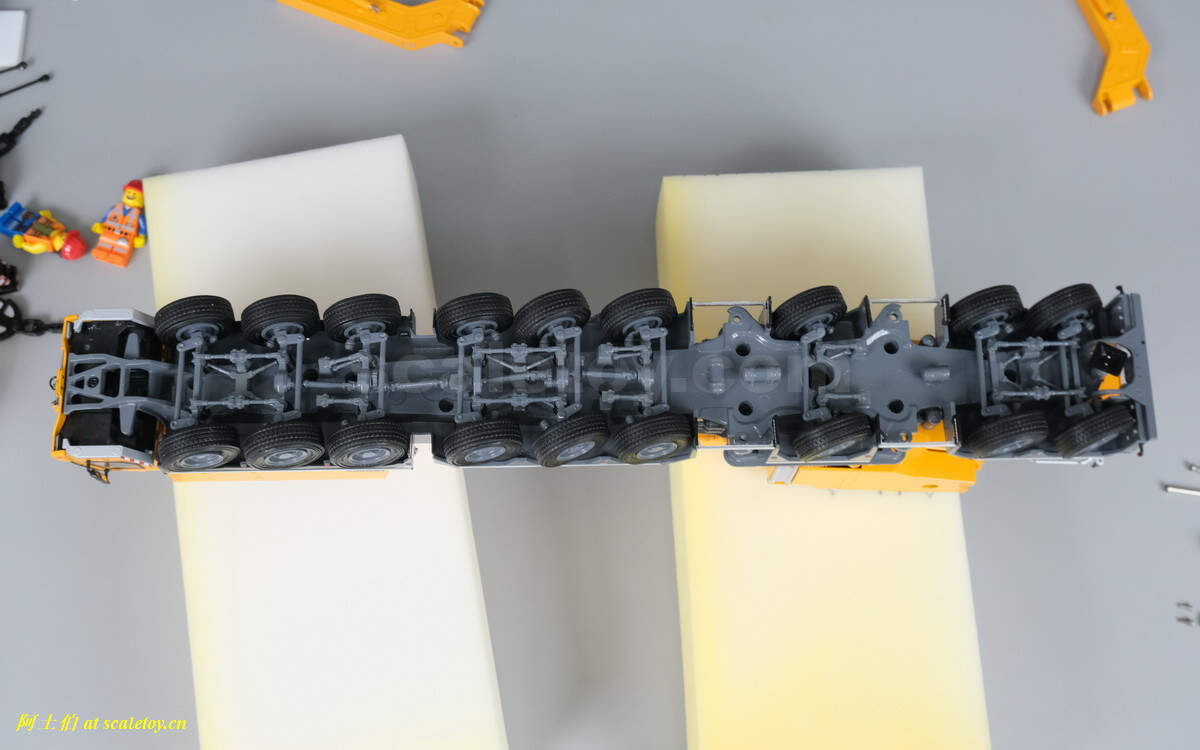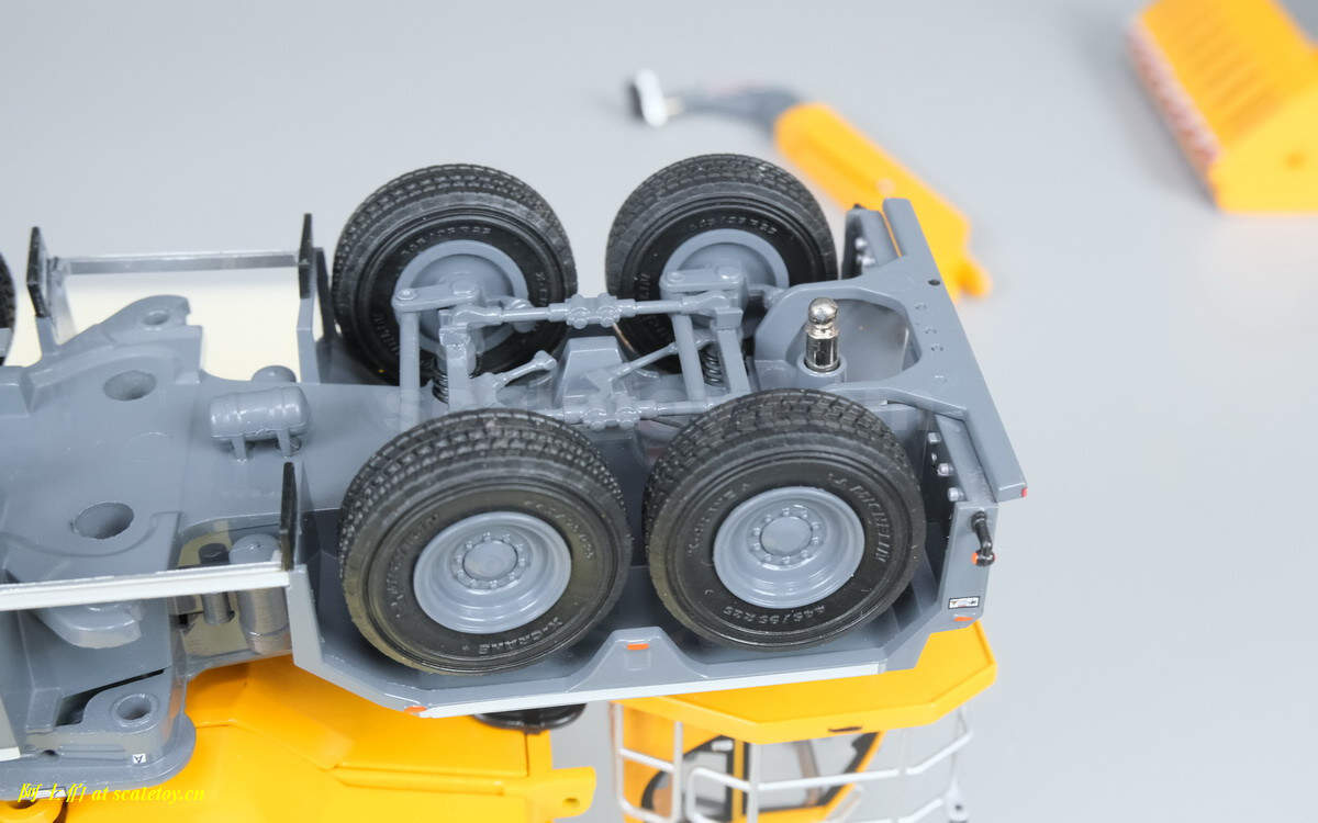 开搞之前先看底盘吧,所有轴线带弹簧避震,所有轴线本轴转向联动,2、3、5、6四个轴是驱动轴。