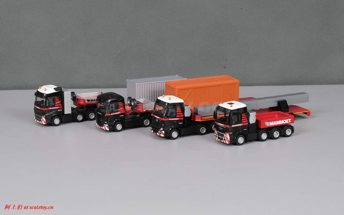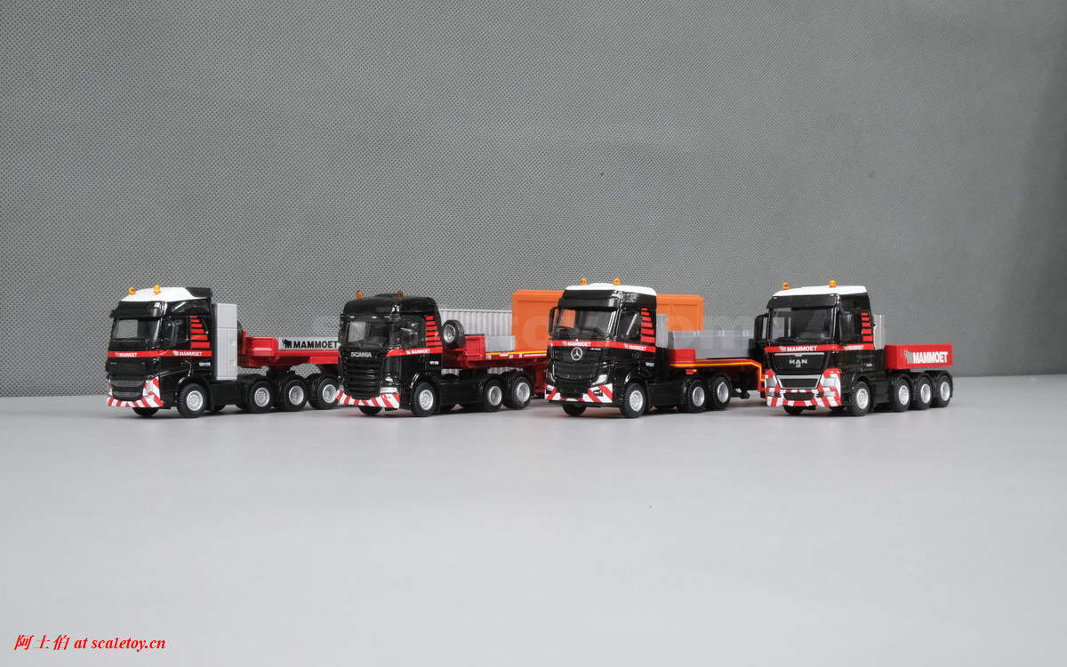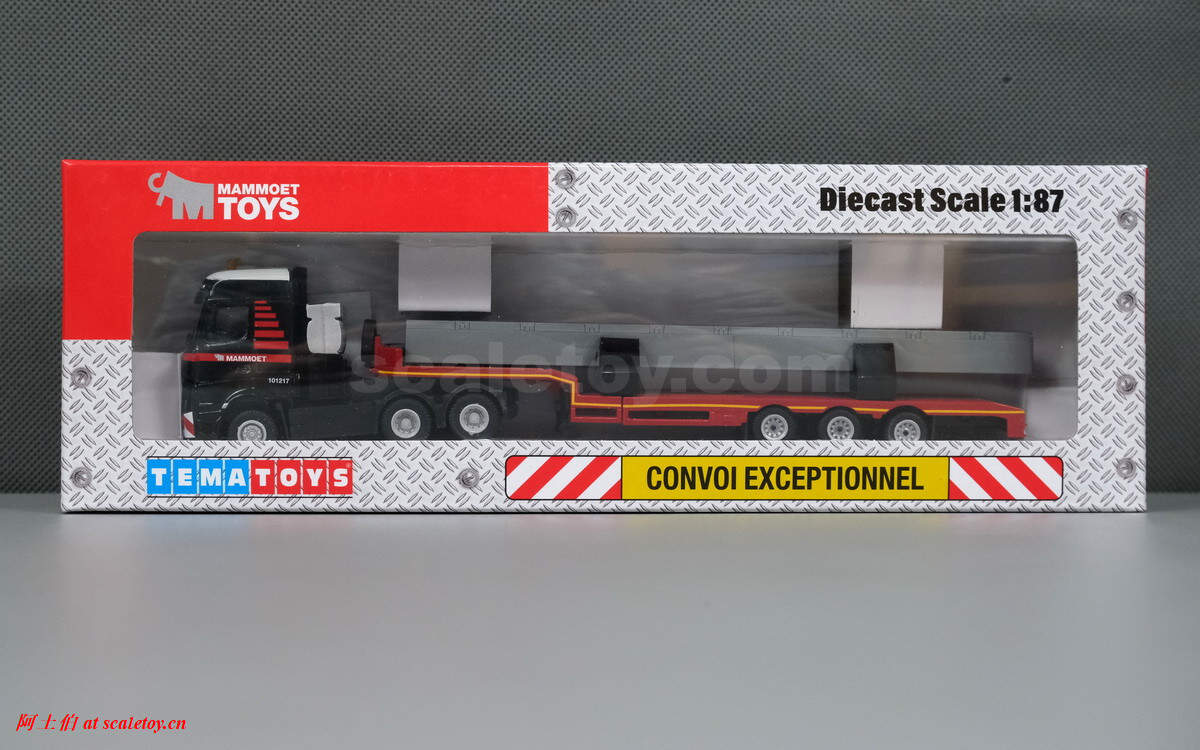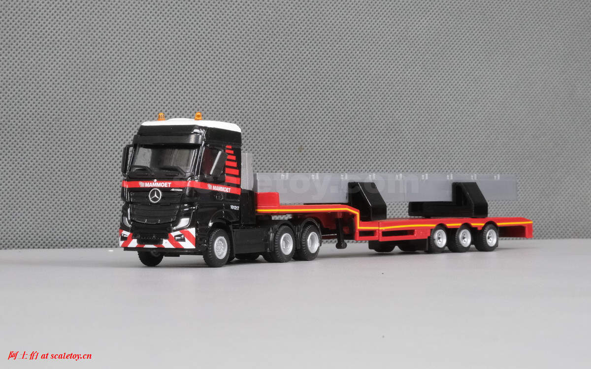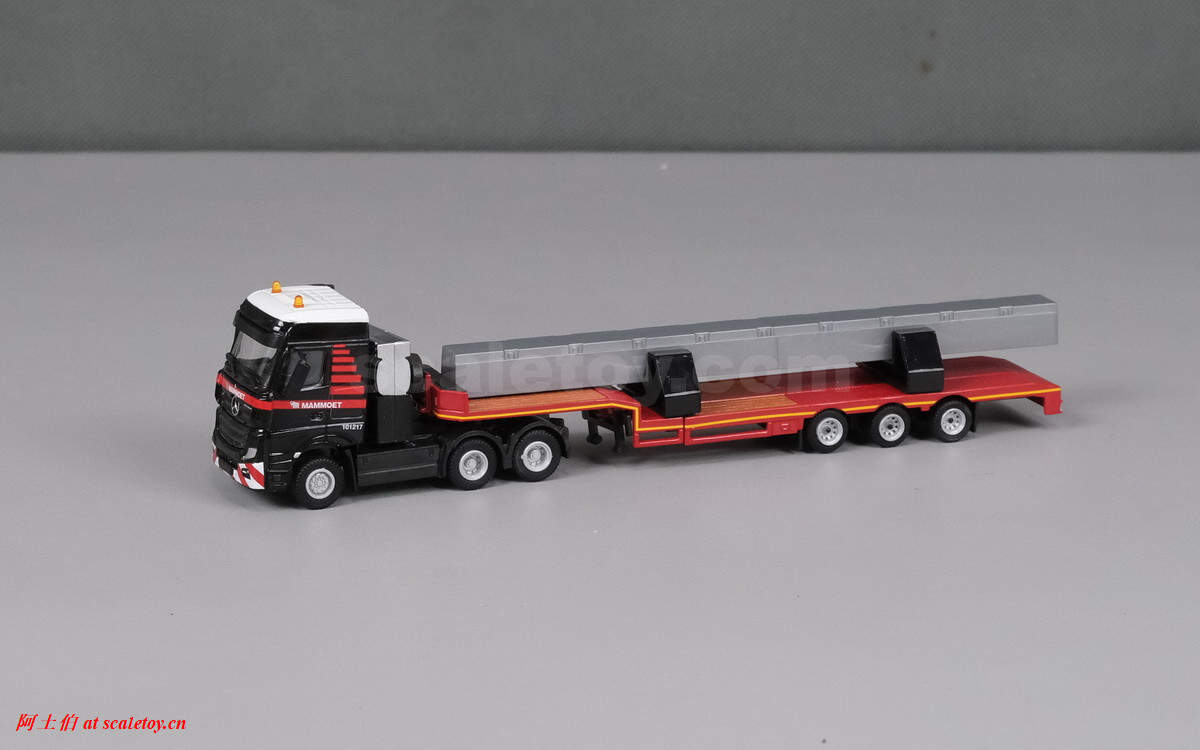[WSI][TEMATOYS] MB ACTROS MP4 BIG SPACE 6X4 with 3X SEMI LOW LOADER with concrete beam – MAMMOET 1/87
