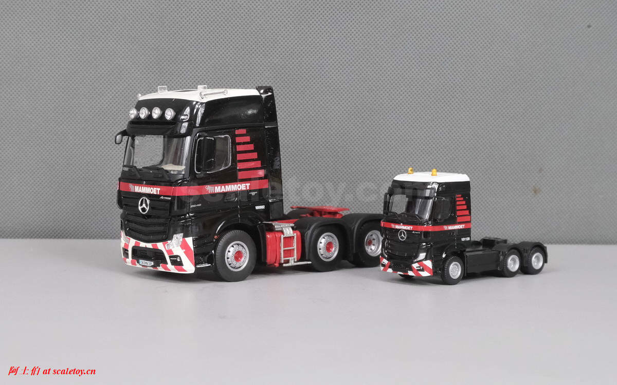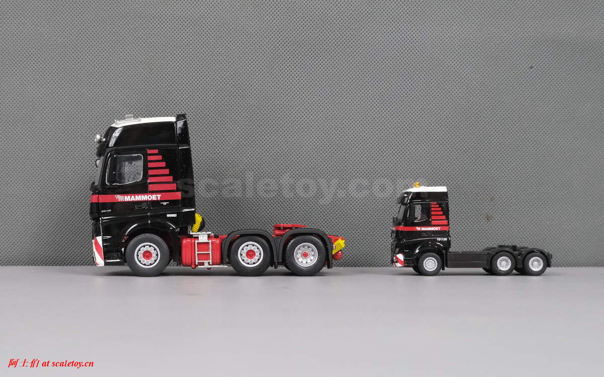 最后是奔驰对奔驰:1/50和1/87。拿错了,这里拿了WSI SET II里的,少一个设备包,车头编号也不同,其他一样。