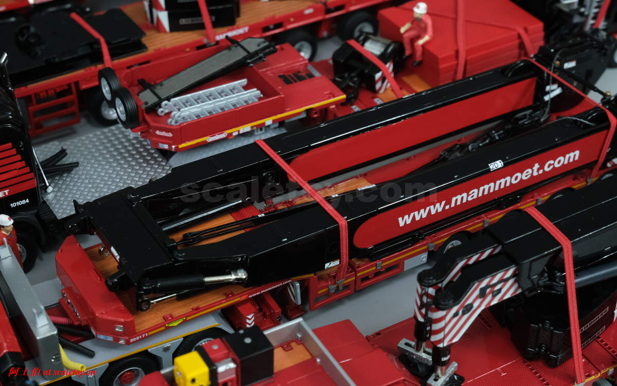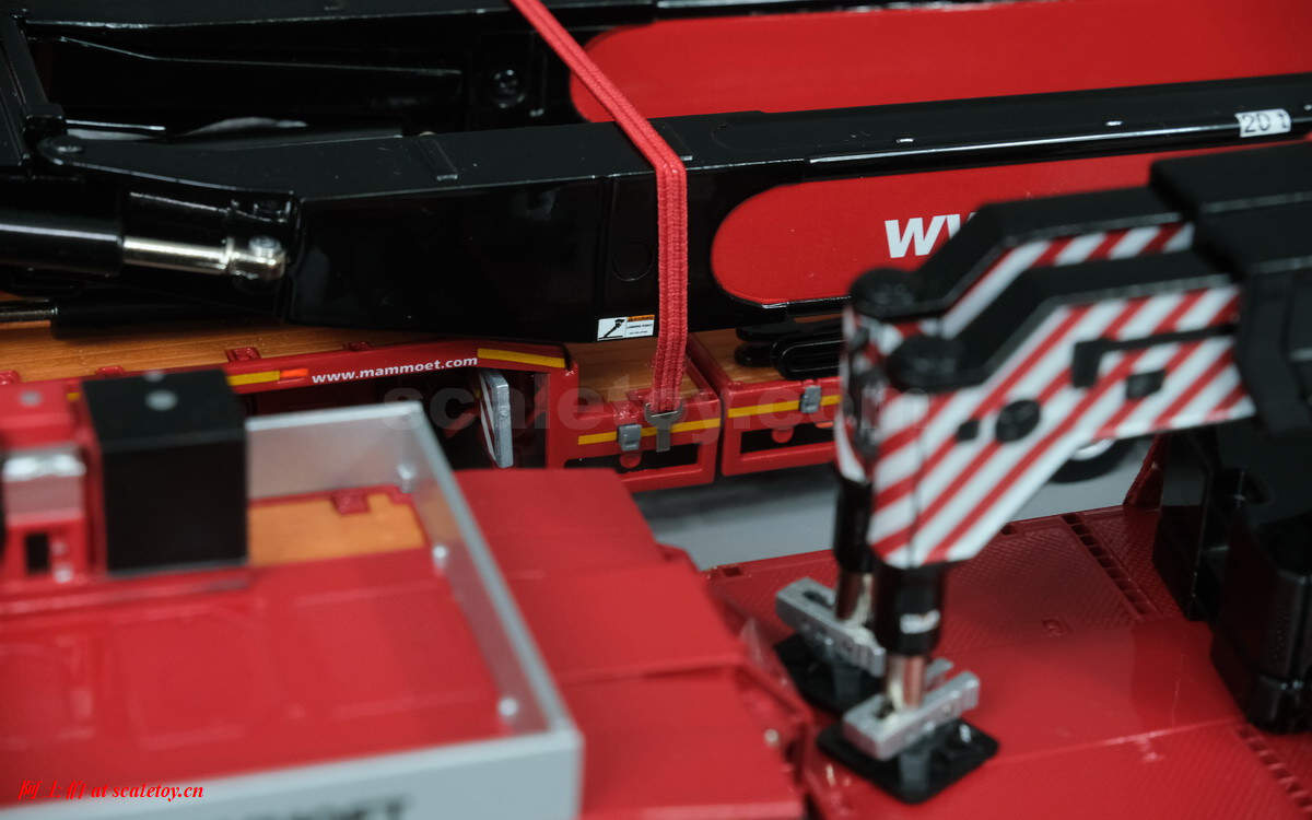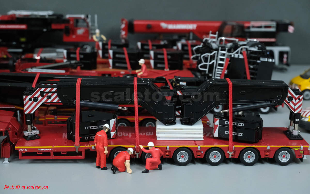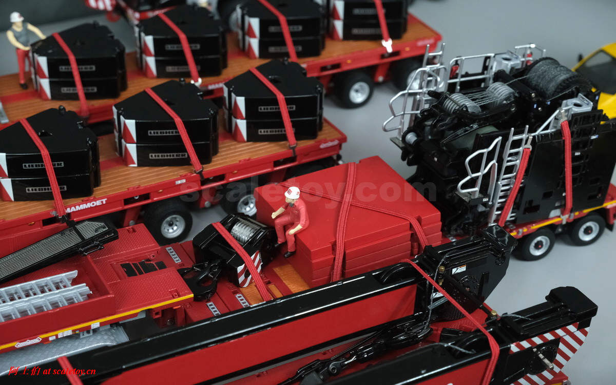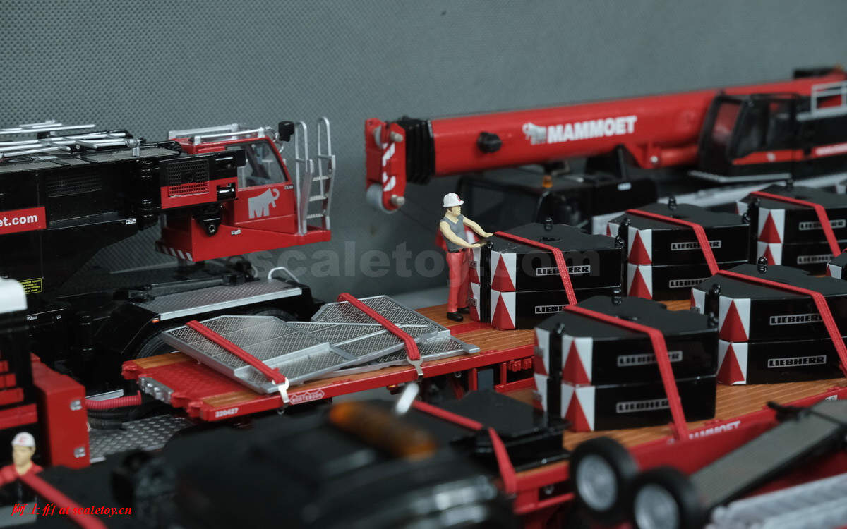 今天使用WSI出品的捆绑带附件,看下利勃海尔LTM1750-9.1的运输大概需要如何配合。如前所述,除了配重、吊钩,车辆支腿可以卸下,上车动力单元和辅助卷扬模块都是分开运输的,可以有效降低运输状态的主车地面压力,满足通行需要。