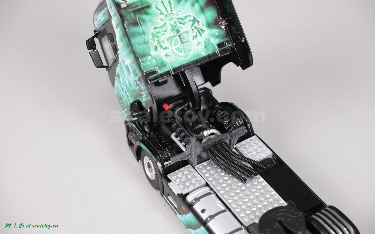 驾驶室的细节也较多刻画,窗帘,两块牌子,内部构造