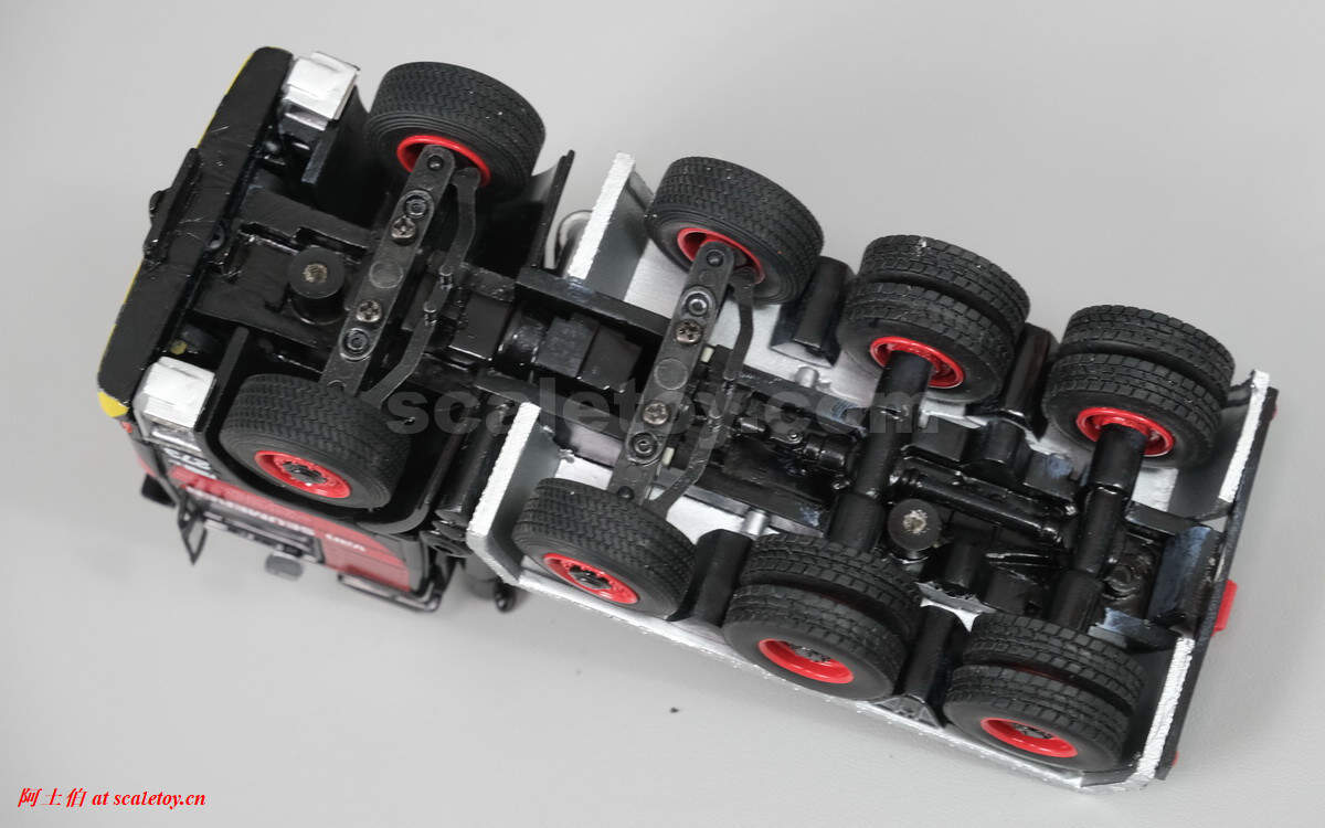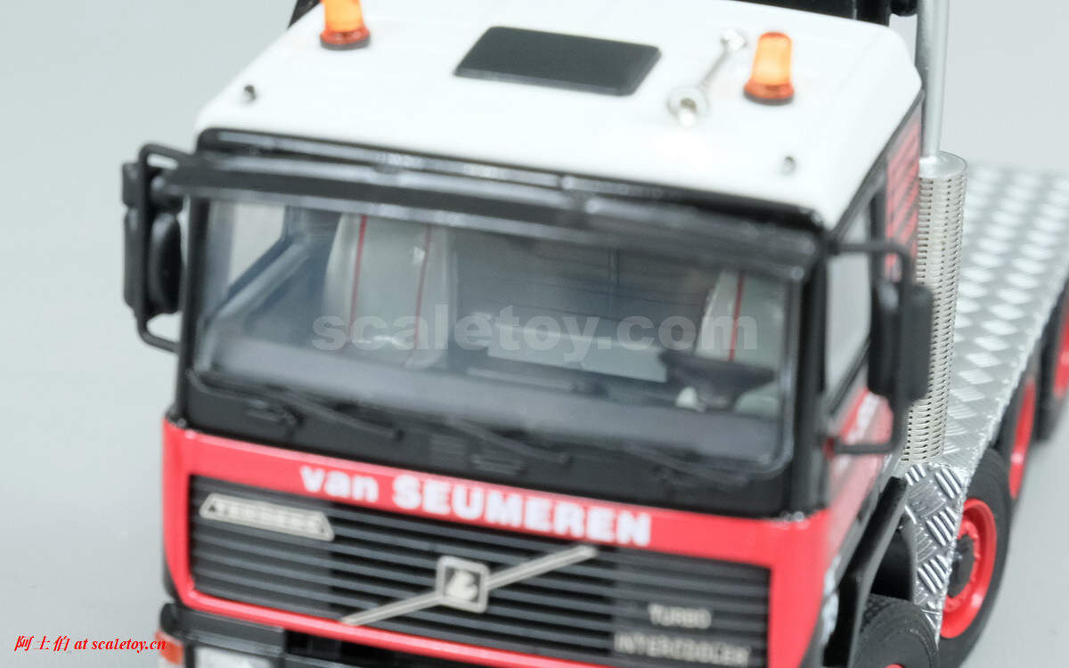 车内细节,座椅上的两条红线算是认真制作了,方向盘上是VOLVO字样,说明用的是VOLVO的驾驶室。