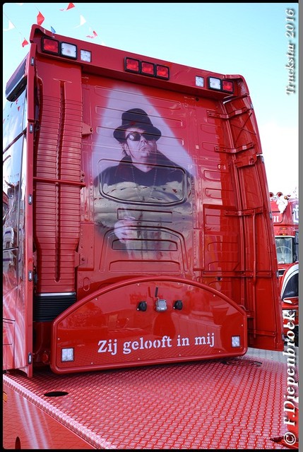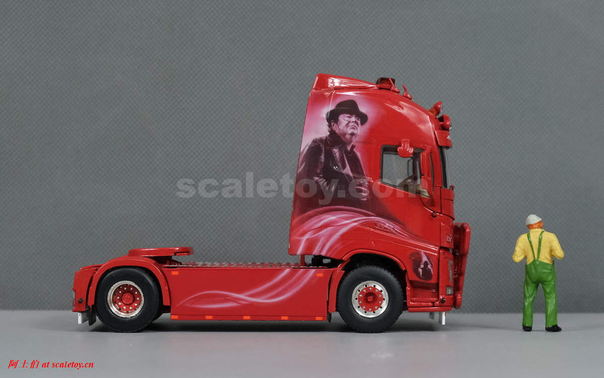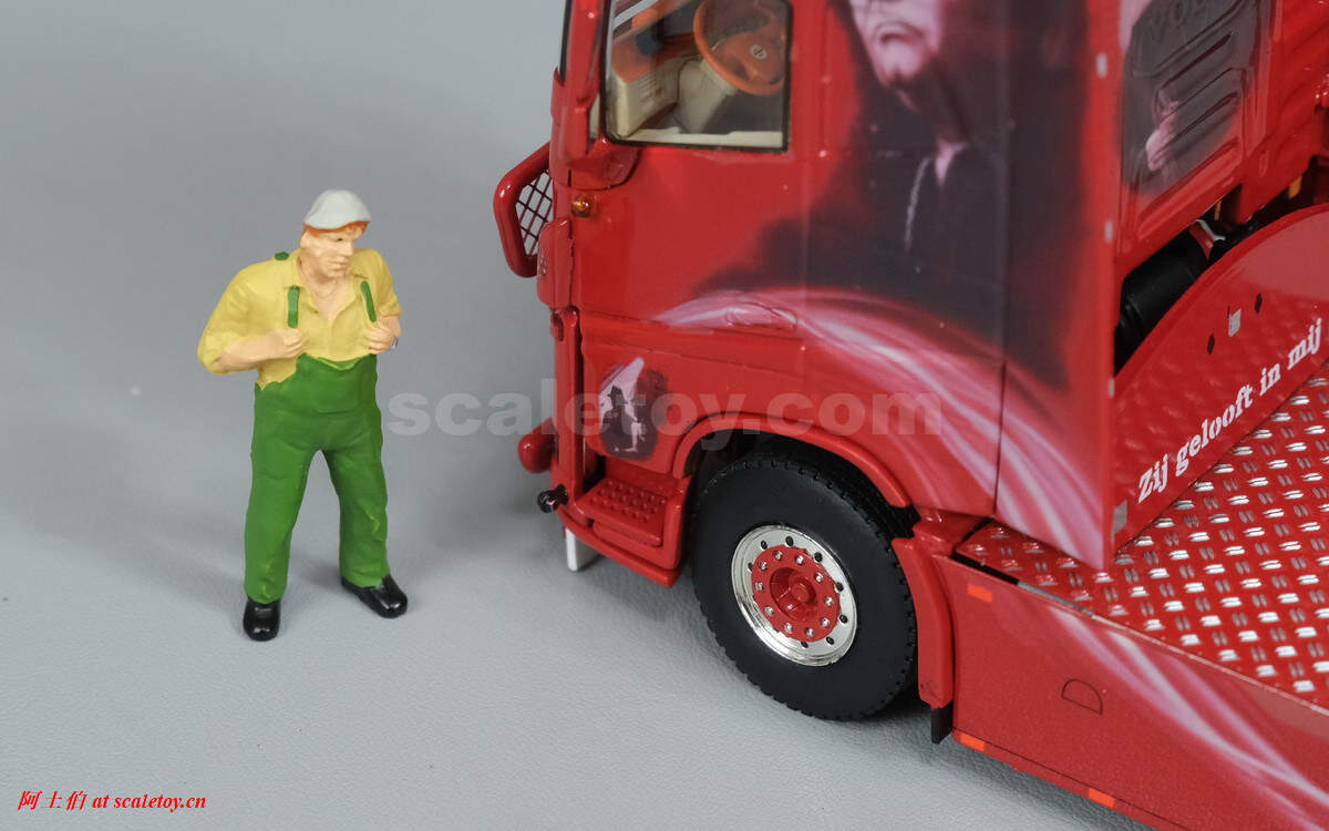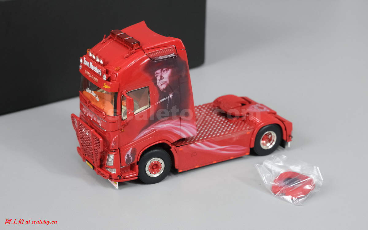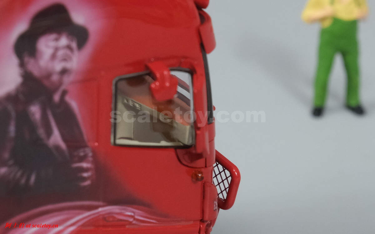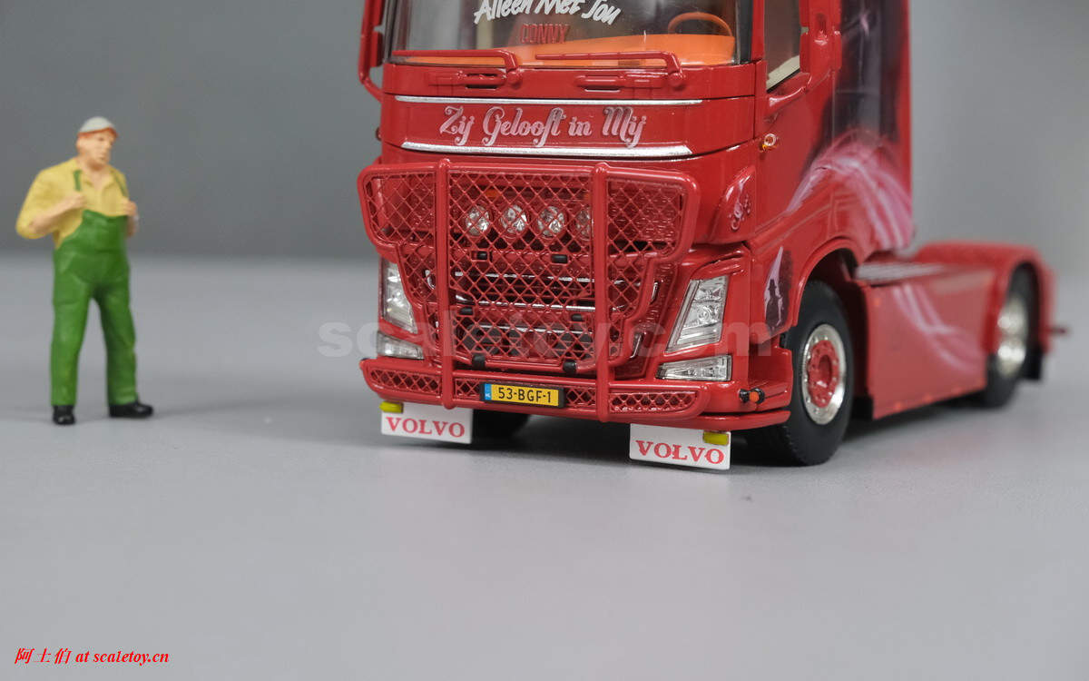 驾驶室背后的人物图案,上面有加装的灯饰,扁平的气道,后部没有连接线缆,隔板上的荷兰语就是“Zij gelooft in mij”电影名称。拖挂部位全部覆盖了金属板。