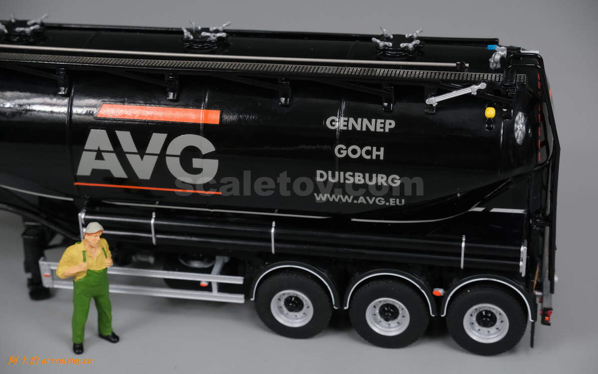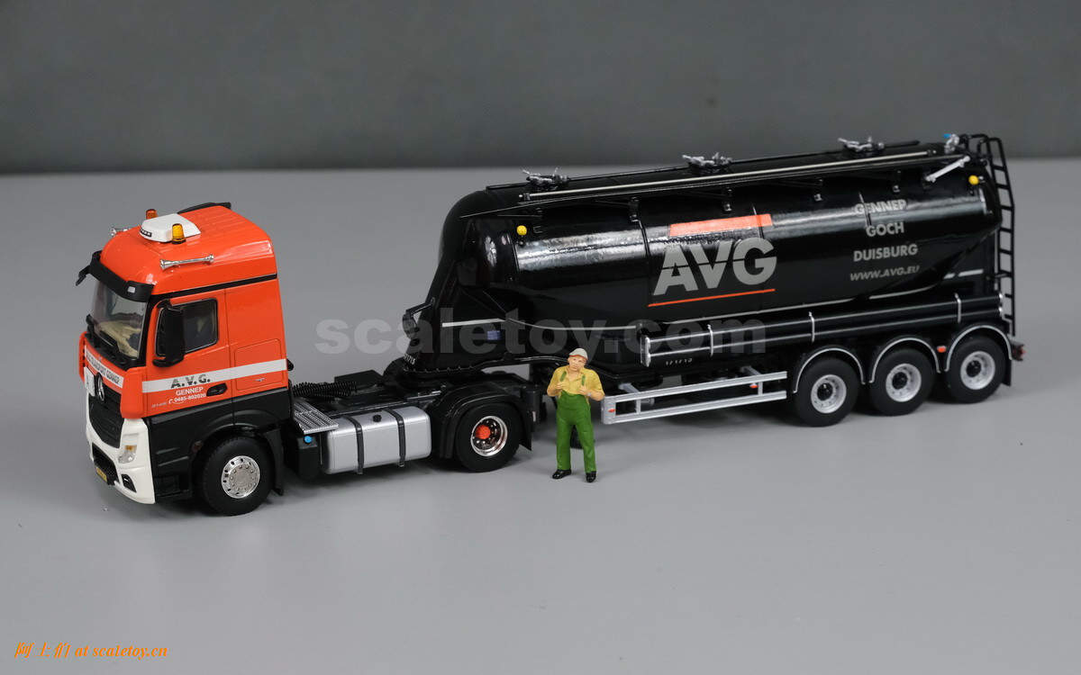 今天介绍其一款槽罐车模型,拖头是奔驰ACTROS MP4 STREAM SPACE 4X2,挂车是三轴槽罐车。模型由WSI出品,编号01-2953,比例1/50: