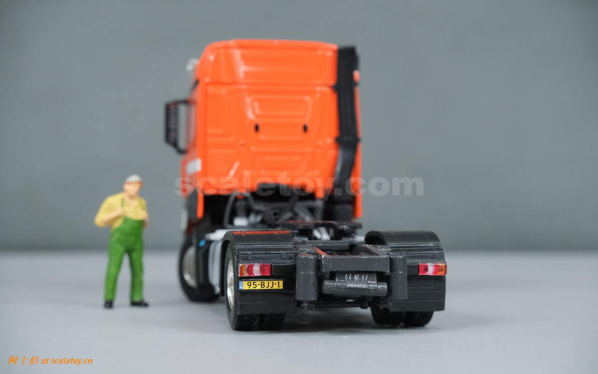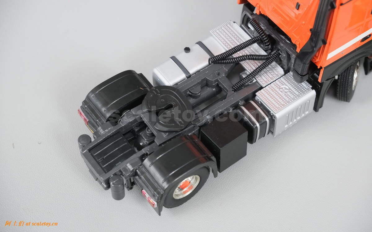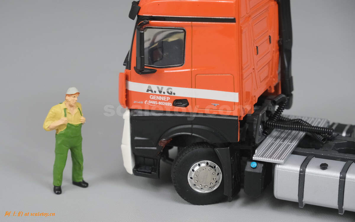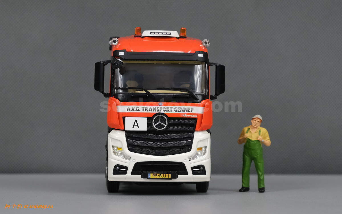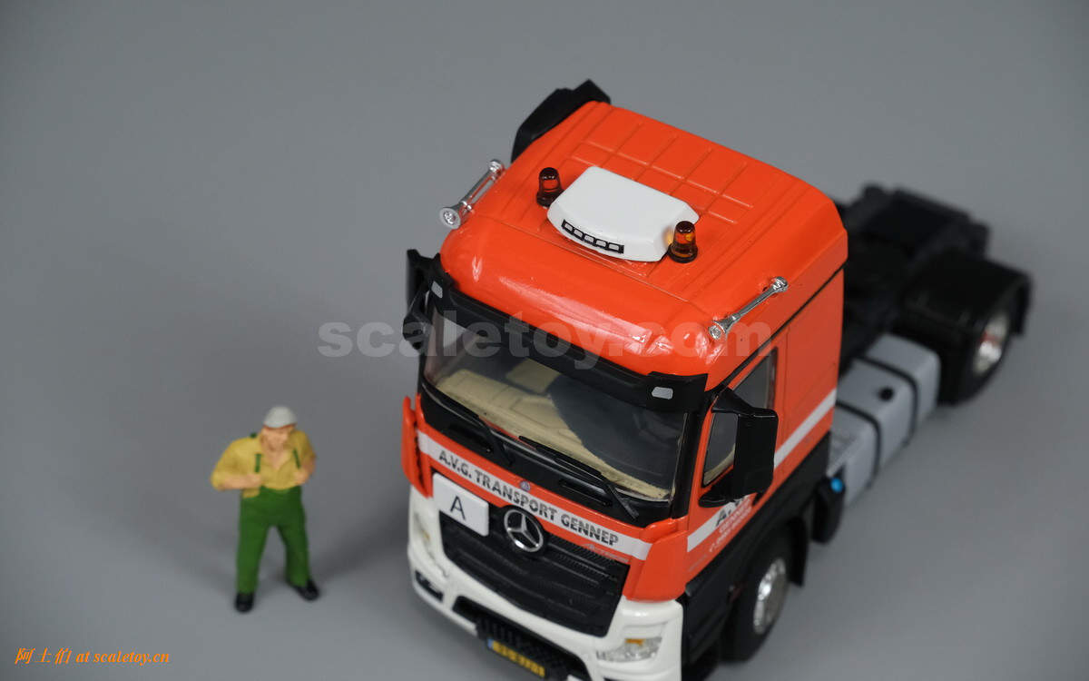奔驰两轴ACTROS MP4 STREAM SPACE拖头,相对方正,不过基本没有棱角。顶部没有特别复杂的细节增加,有空调和警示灯,喇叭。前脸星标,公司名称,车牌号等都很清晰。