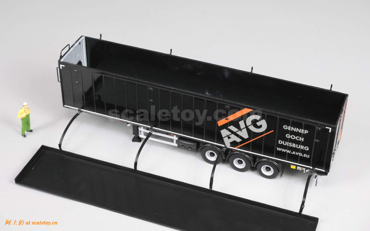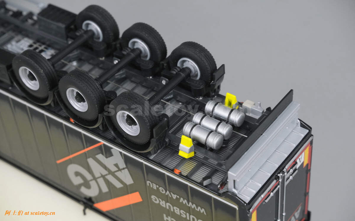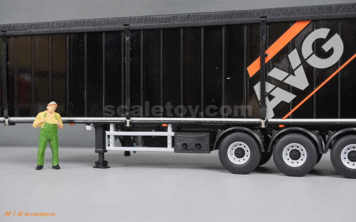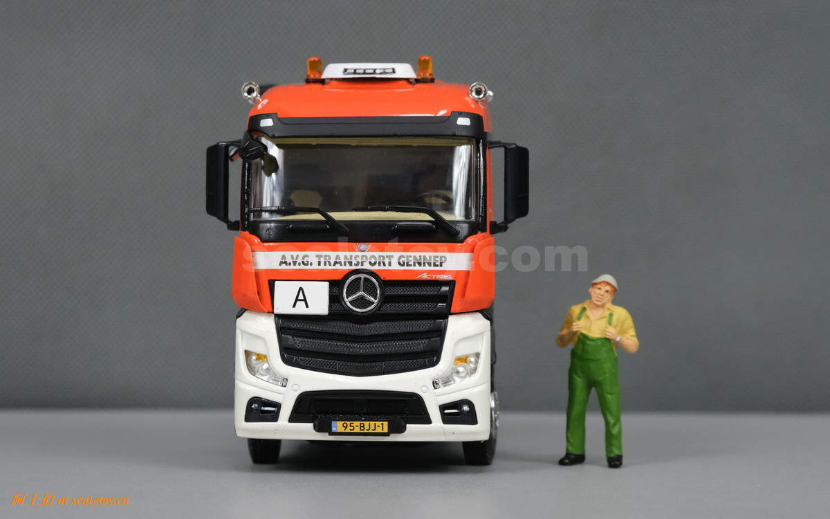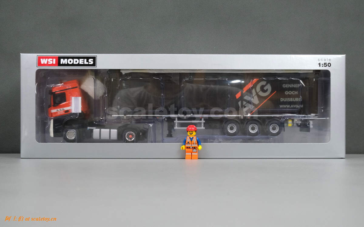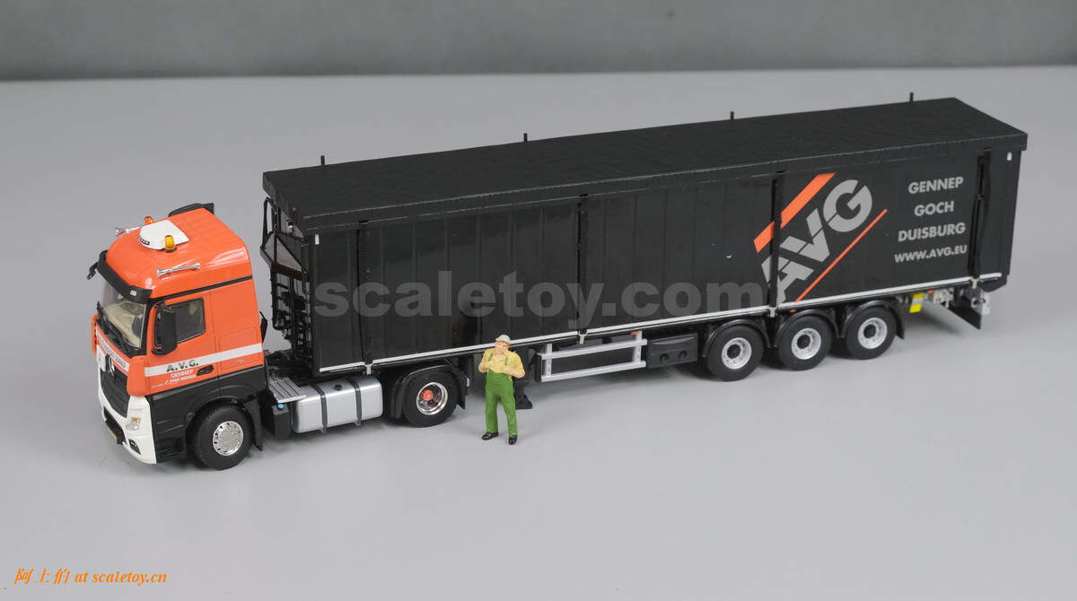 今天继续介绍一款AVG涂装的车模,拖头还是奔驰的ACTROS MP4 STREAM SPACE 4X2,挂三轴顶篷挂车。模型仍然是WSI出品,编号01-2953A