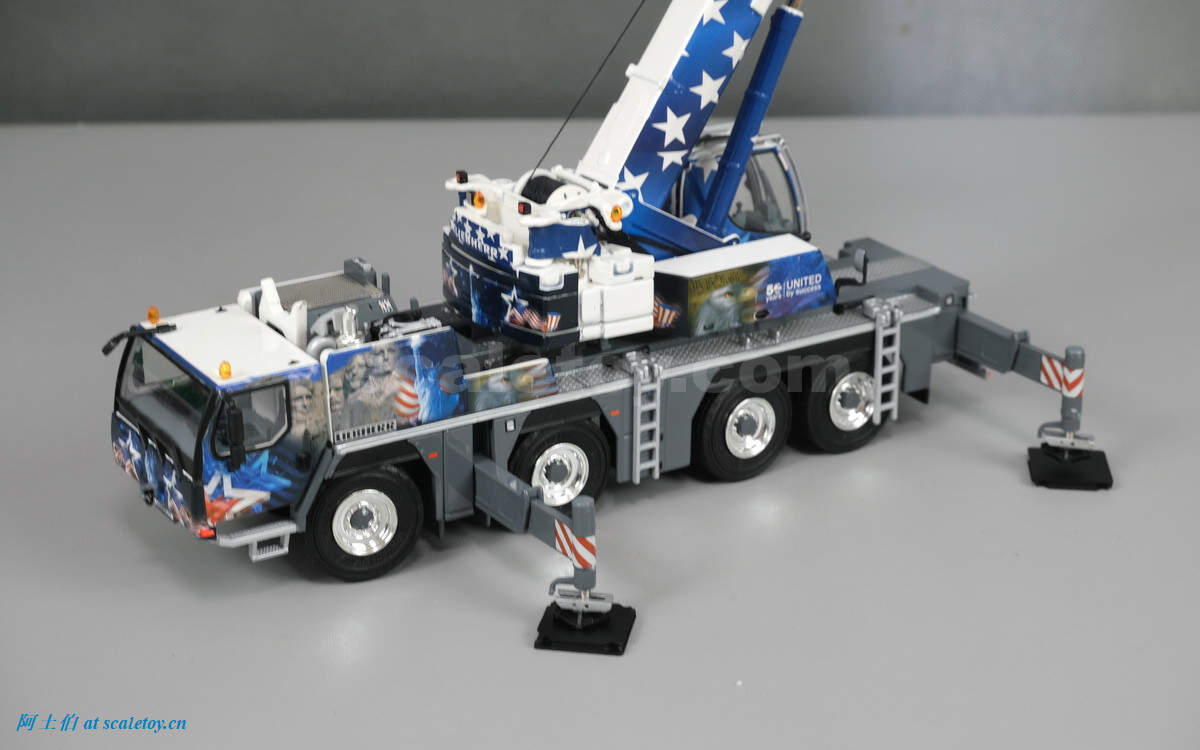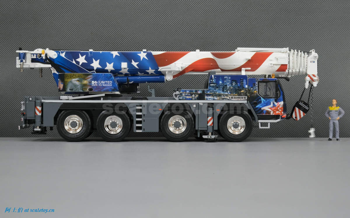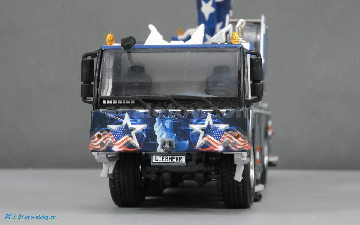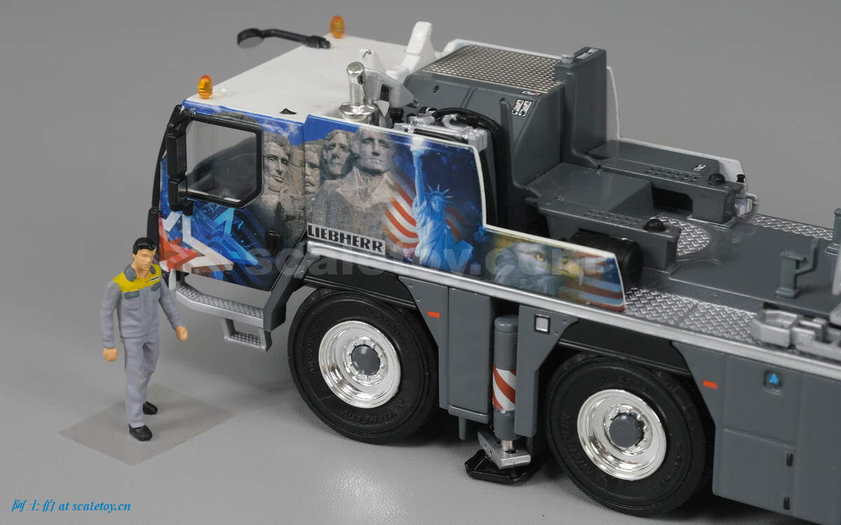 本站之前介绍过几款不同涂装的LTM1090,今天我们看这款特别涂装,实车出现在2020年3月拉斯维加斯的2020 Conexpo,利勃海尔为纪念进入美国市场50周年,且作为LTM1090首次在北美市场官宣发布,将这台起重机做了美国特别涂装,包括星条元素,自由女神像,总统山,纽约夜景等。