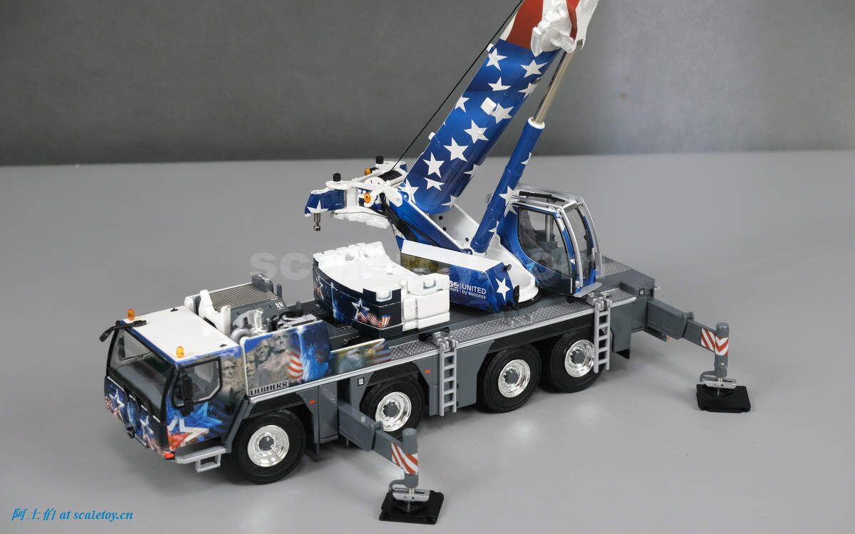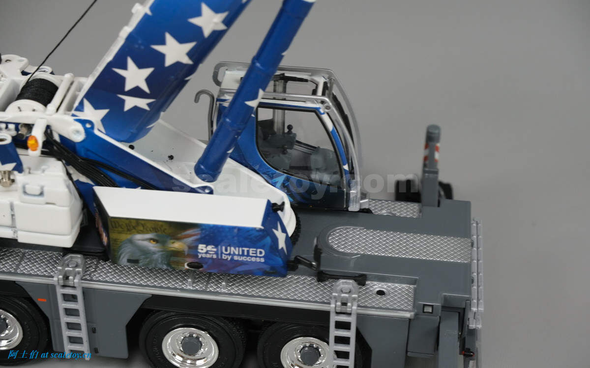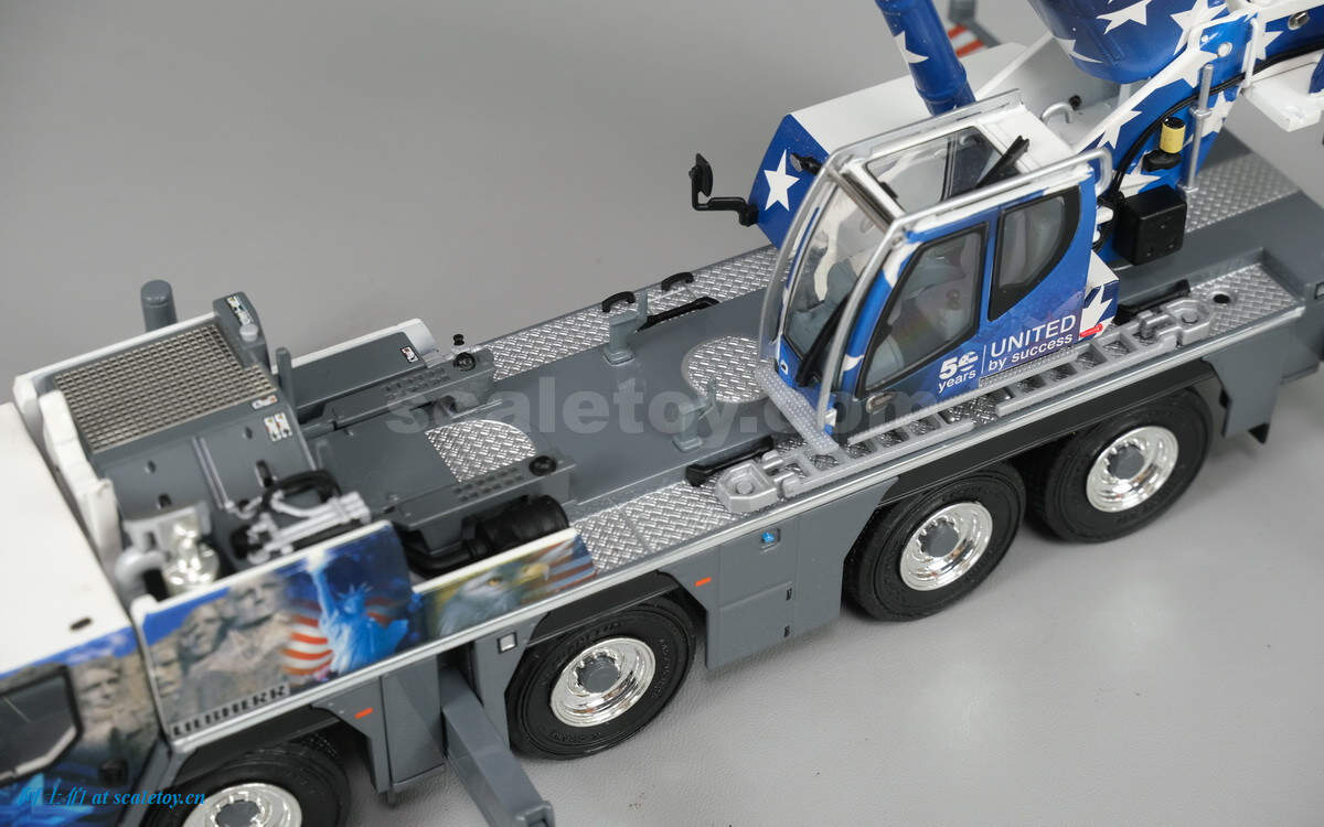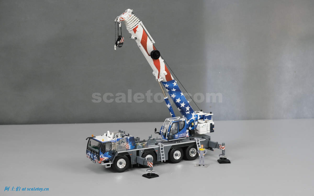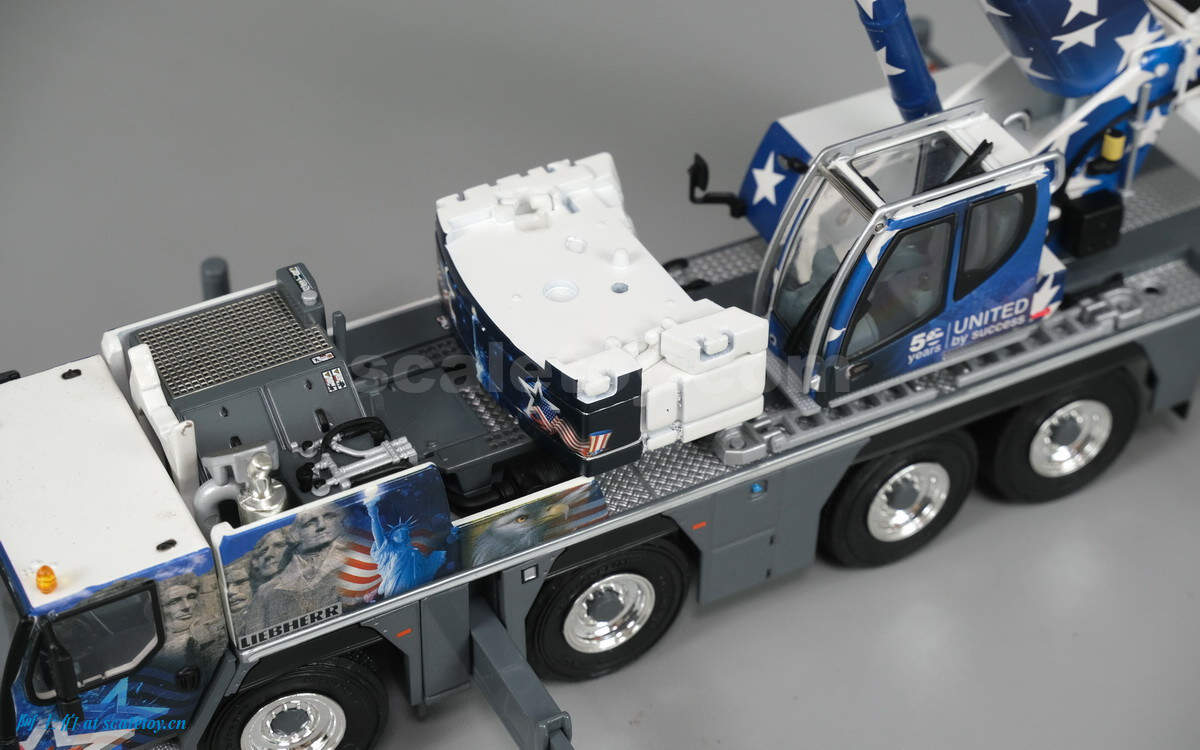 本站之前介绍过几款不同涂装的LTM1090,今天我们看这款特别涂装,实车出现在2020年3月拉斯维加斯的2020 Conexpo,利勃海尔为纪念进入美国市场50周年,且作为LTM1090首次在北美市场官宣发布,将这台起重机做了美国特别涂装,包括星条元素,自由女神像,总统山,纽约夜景等。