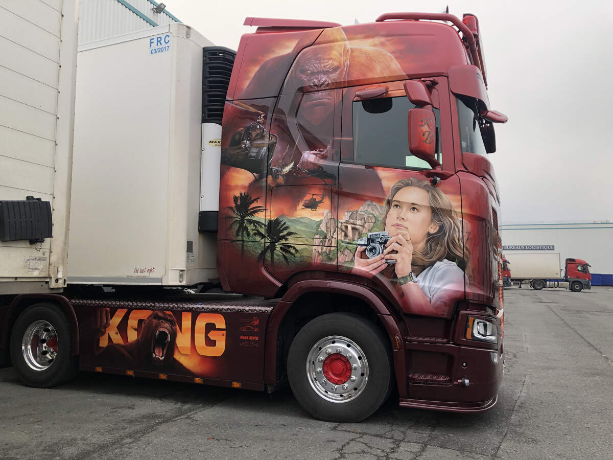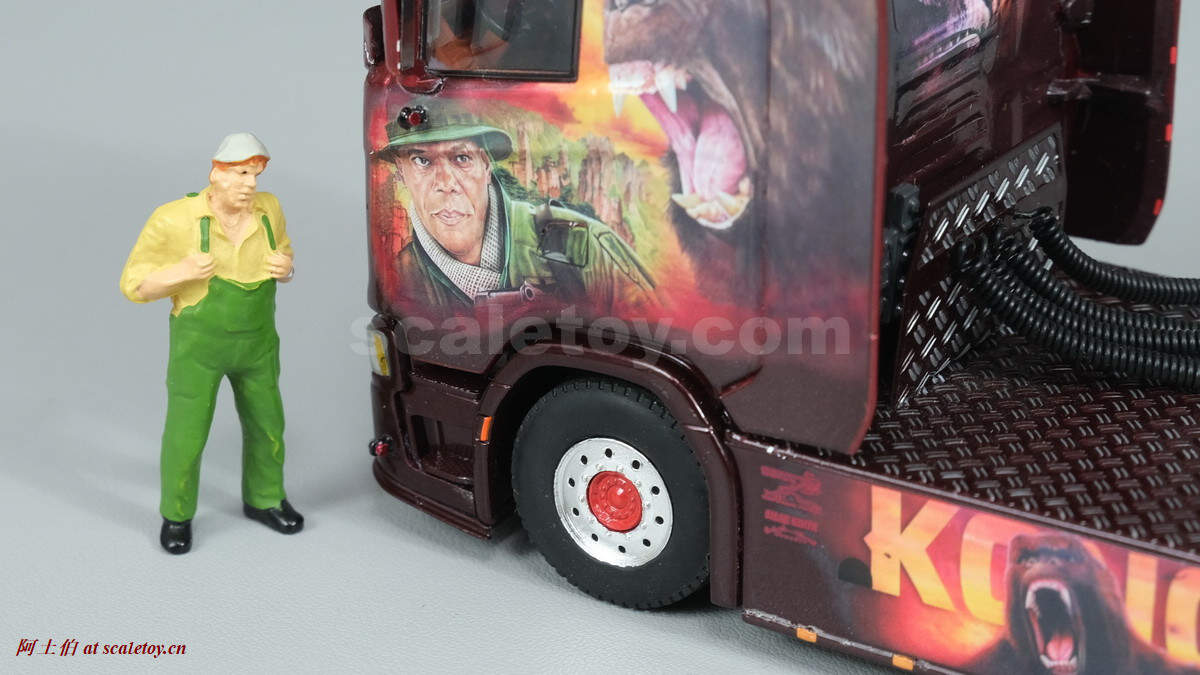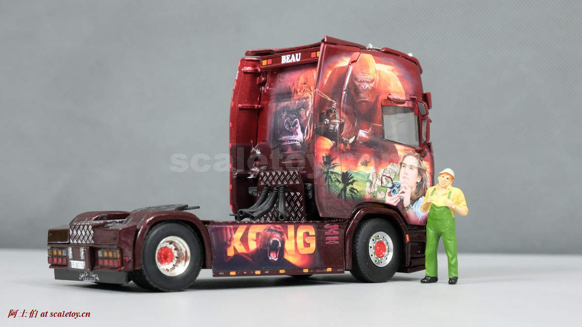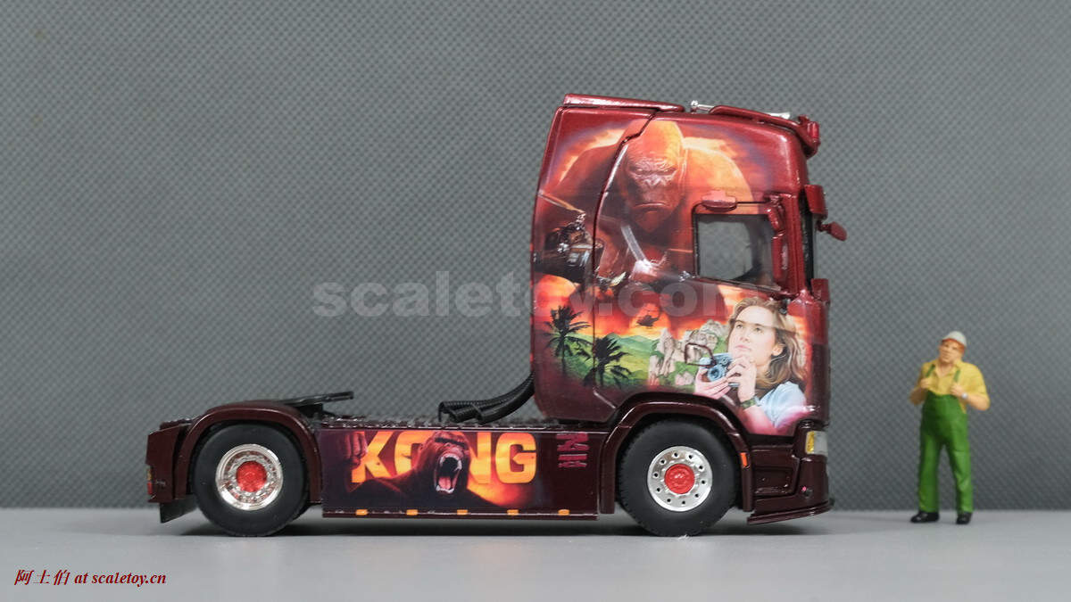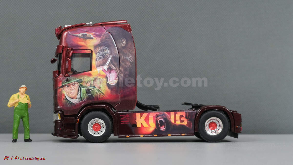 今天介绍一台斯堪尼亚S HIGHLINE CS20H 两轴拖头,电影“金刚:骷髅岛”主题彩绘。金刚是大猩猩的名字,有关大猩猩的故事被拍过多部电影,大家感兴趣的可以自己去看。不过我们的思维模式都是美女+野兽,不知道如果是帅哥+母猩猩是否可以获得很多观众的泪点。