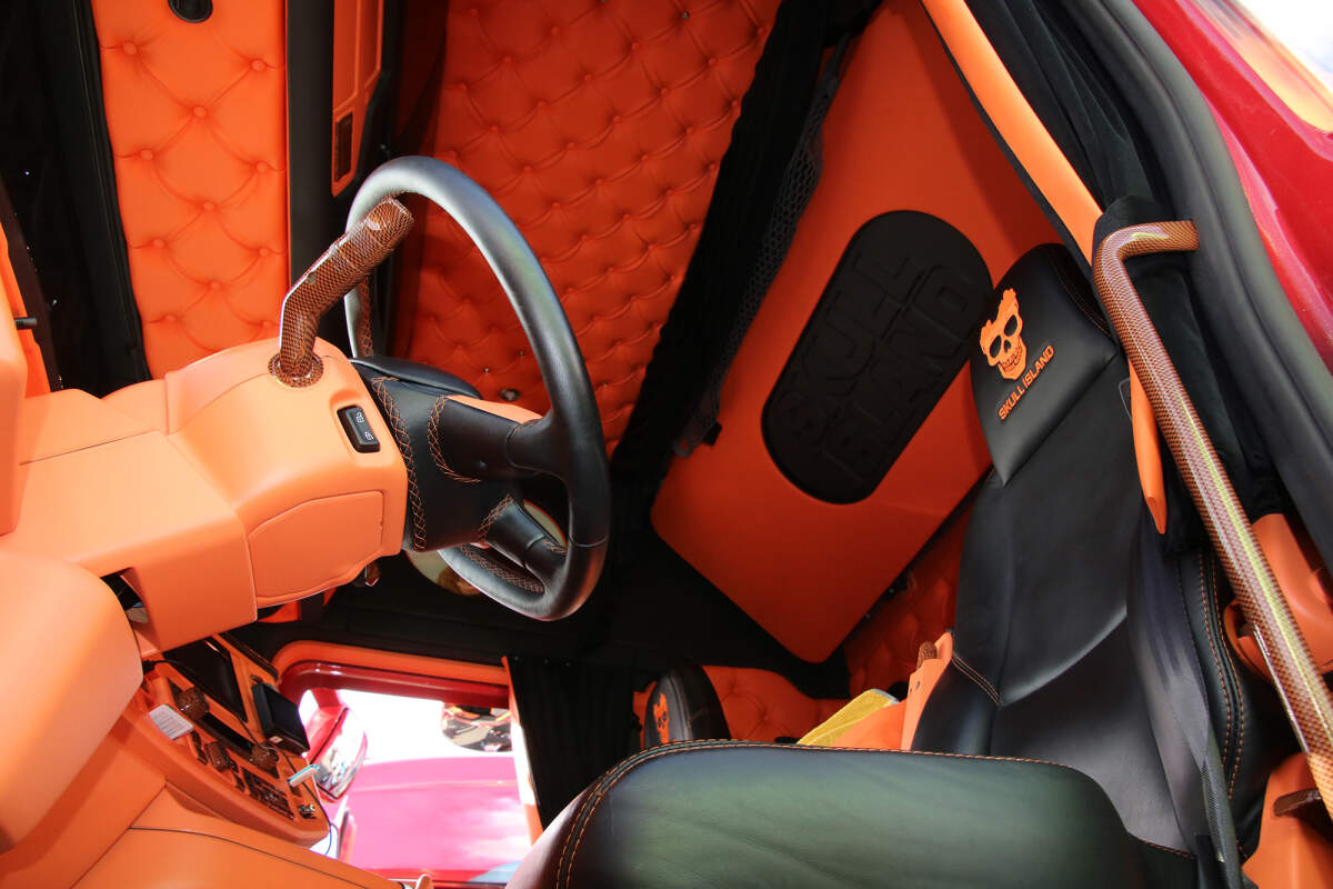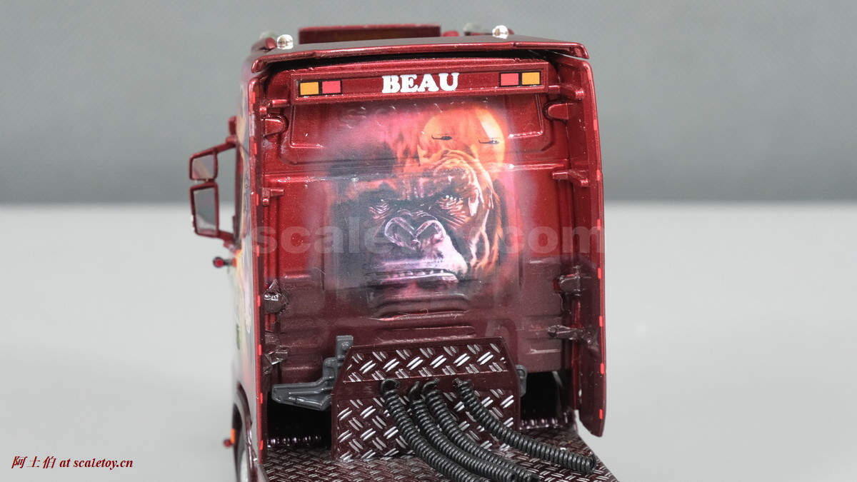 驾驶室后部,猩猩头彩绘,上方结构上的灯用涂色表示