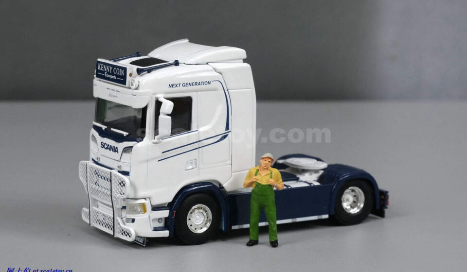 从涂装来看基本是白色加深蓝条装饰,只在驾驶室侧面窗户上方有“NEXT GENERATION”字样,应该是斯堪尼亚新系列的意思。