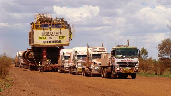 MAMMOET在澳洲的车队,因为澳洲炎热的天气,因此牵引车采用了独特的白色主色涂装,以最大程度的反射阳光。