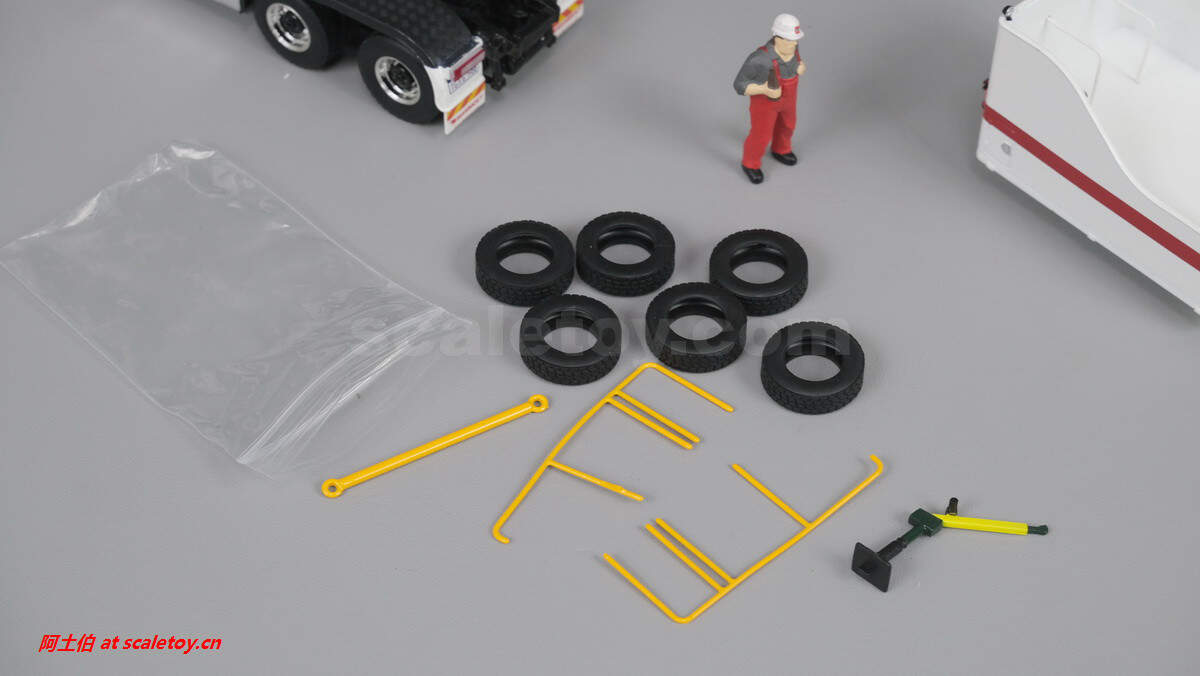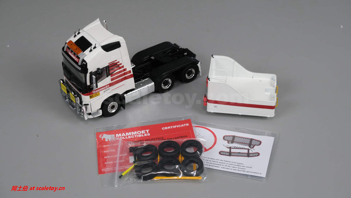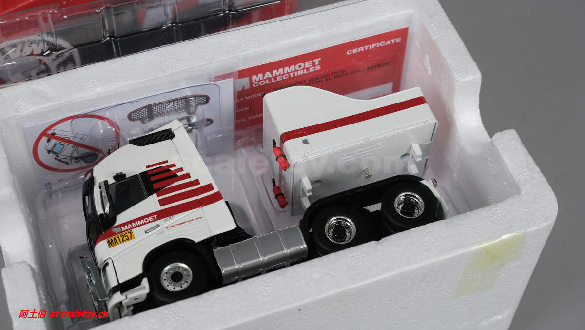 模型由WSI出品,编号410260、 02-2580,比例1/50。带MAMMOET限量500件的收藏证书,以及因为牛栏而拖头不可翻起的提示卡片。